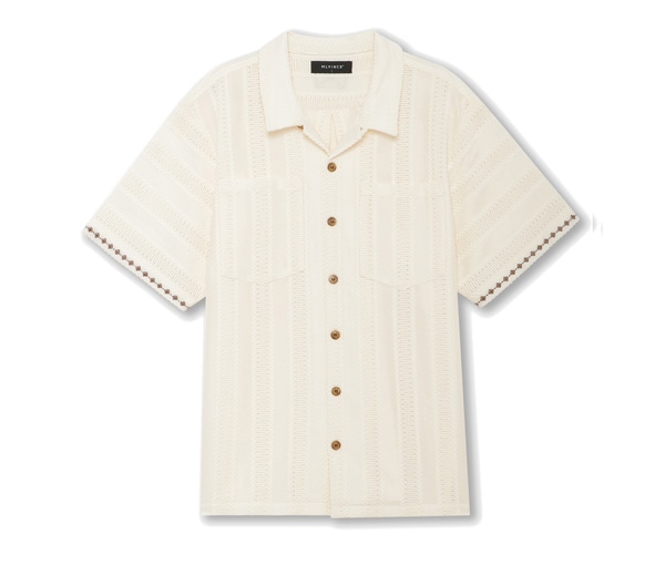 ストライプに編み込まれた夏らしいシャツは