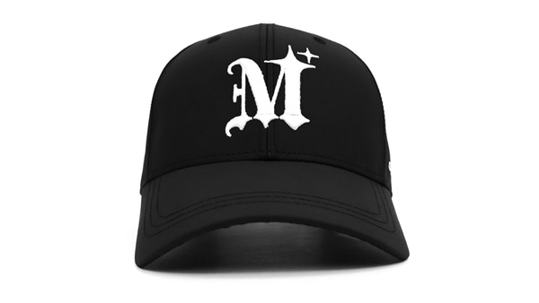 フロントにM LOGOが刺繍で落とし込まれた6パネルキャップ。