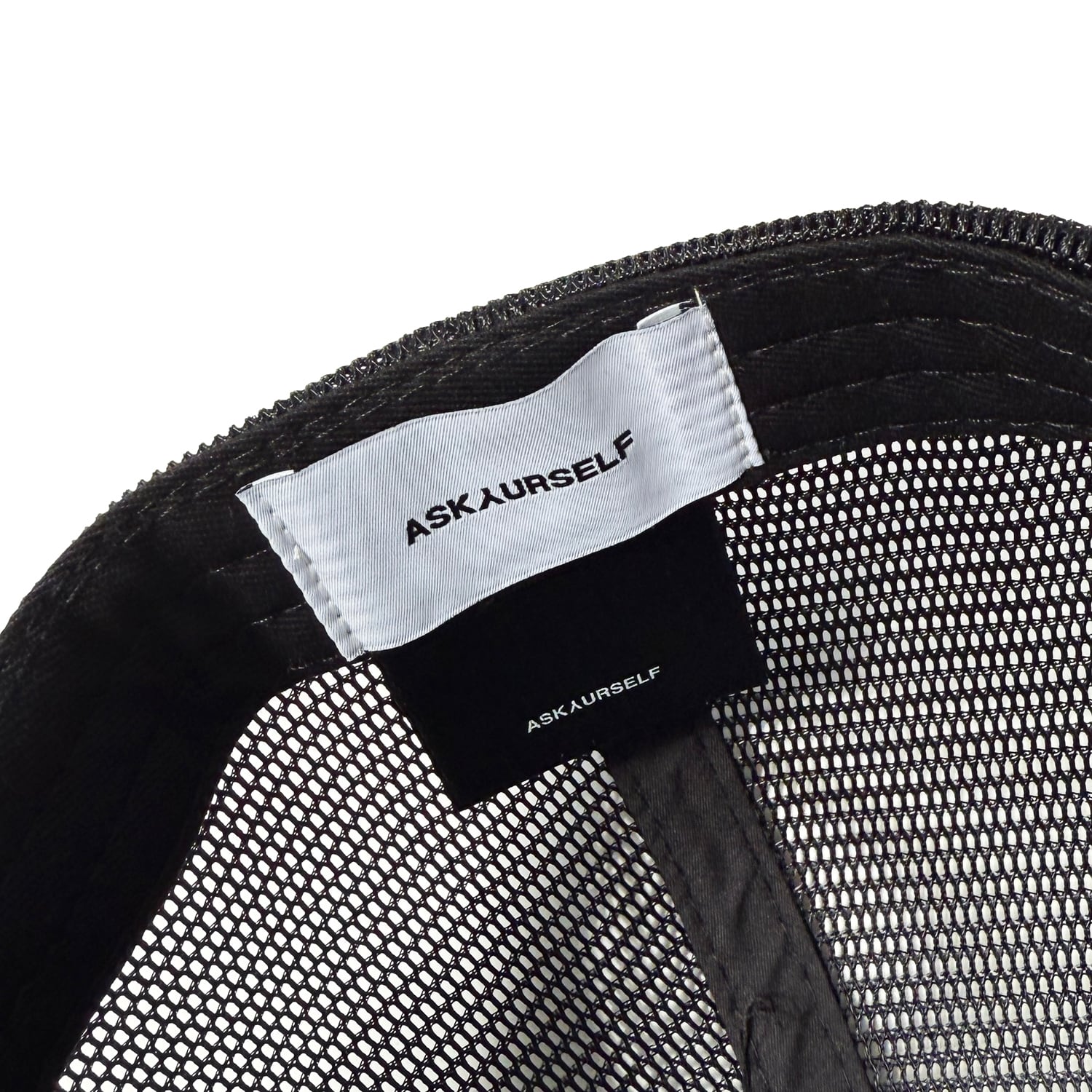 フロントにロゴデザインが刺繍で落とし込まれたトラッカーキャップ。
