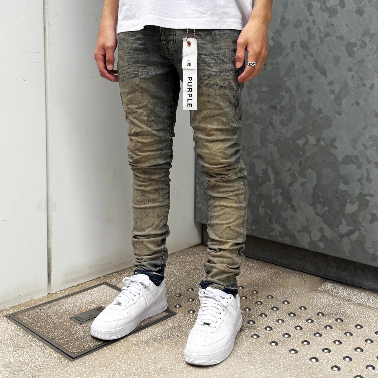 全体的にウォッシュ加工が施されたスキニーデニム。