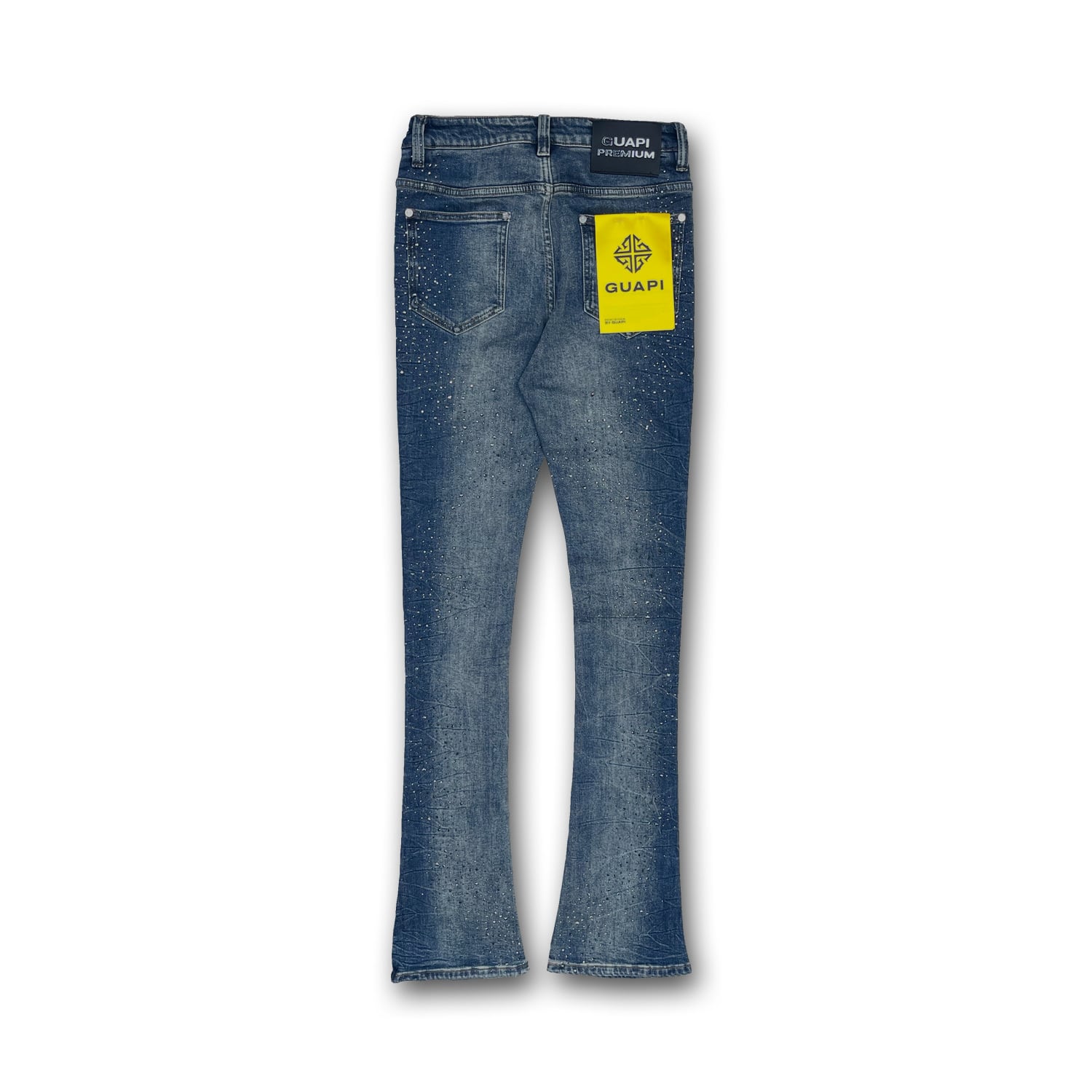 伸縮性のあるストレッチが効いたフレアレッグシルエットのデニムパンツ。