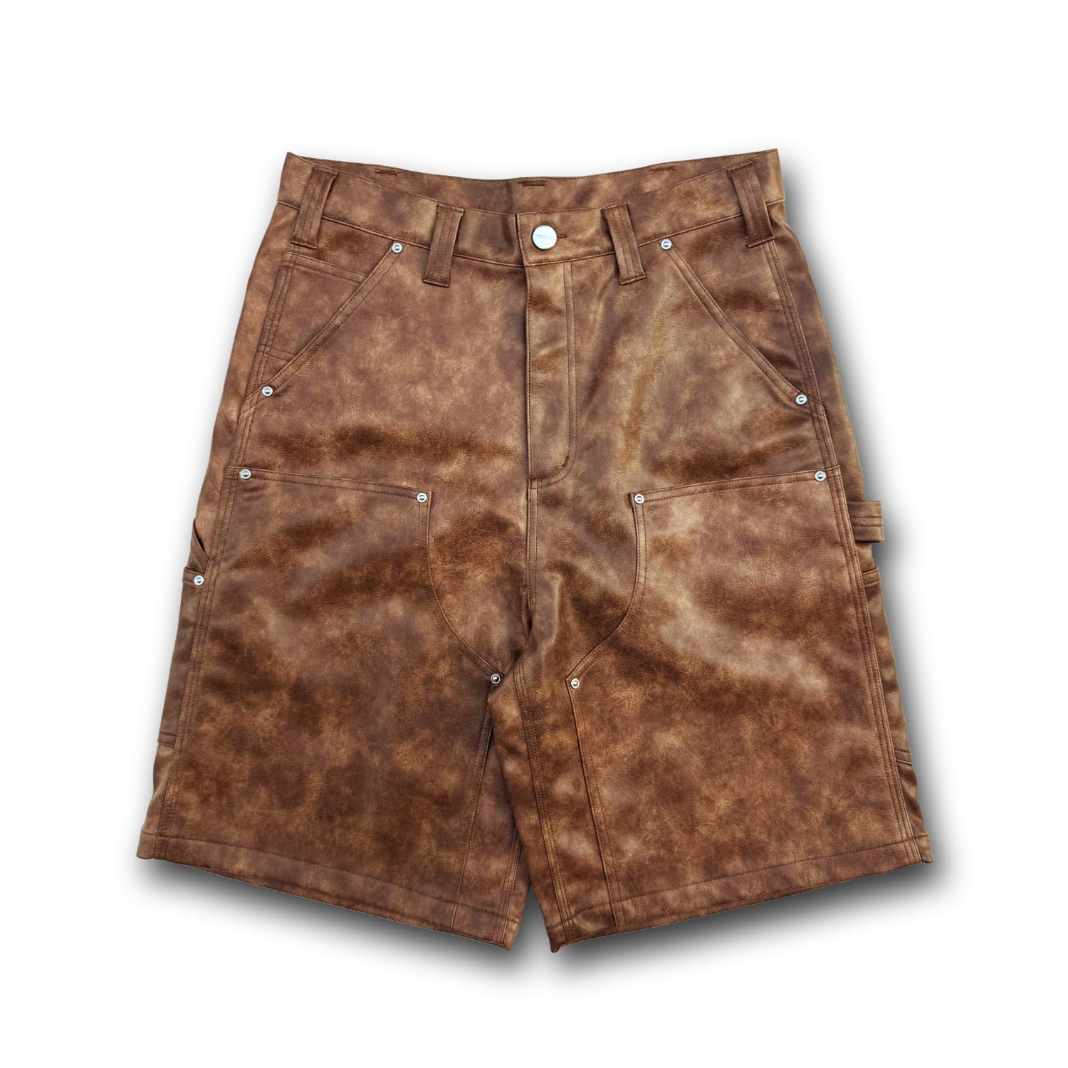 肉厚なエコレザー生地が使用されたレザーショーツ。