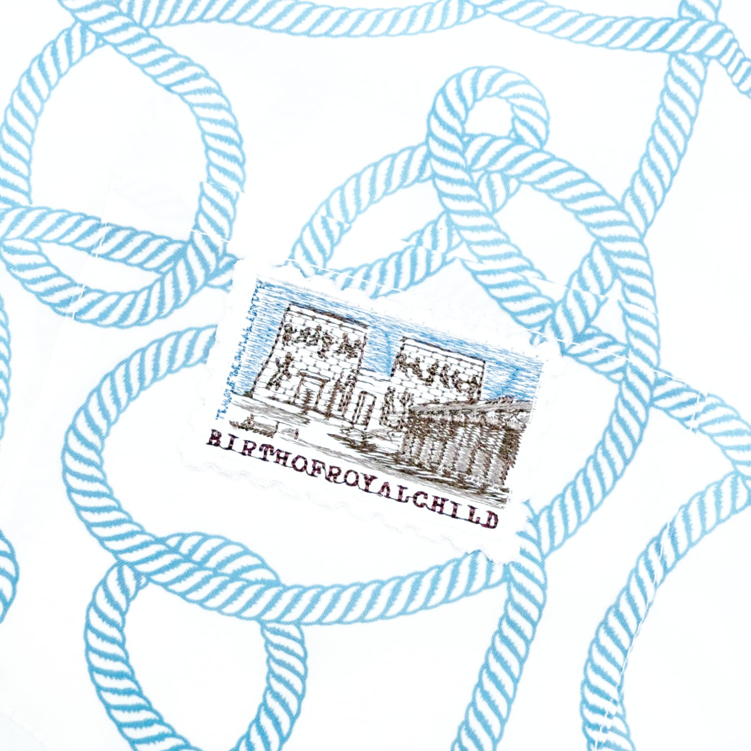 胸元部分には神殿にインスピレーションを受けたデザインのスタンプワーク刺繍。