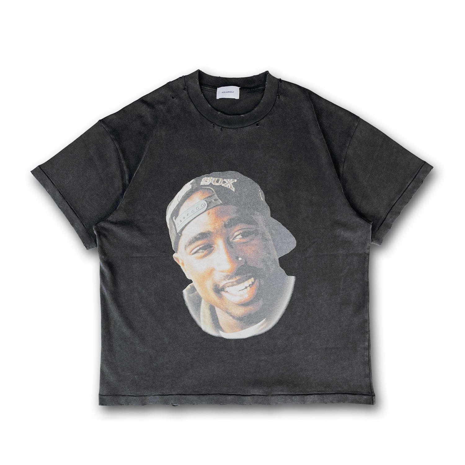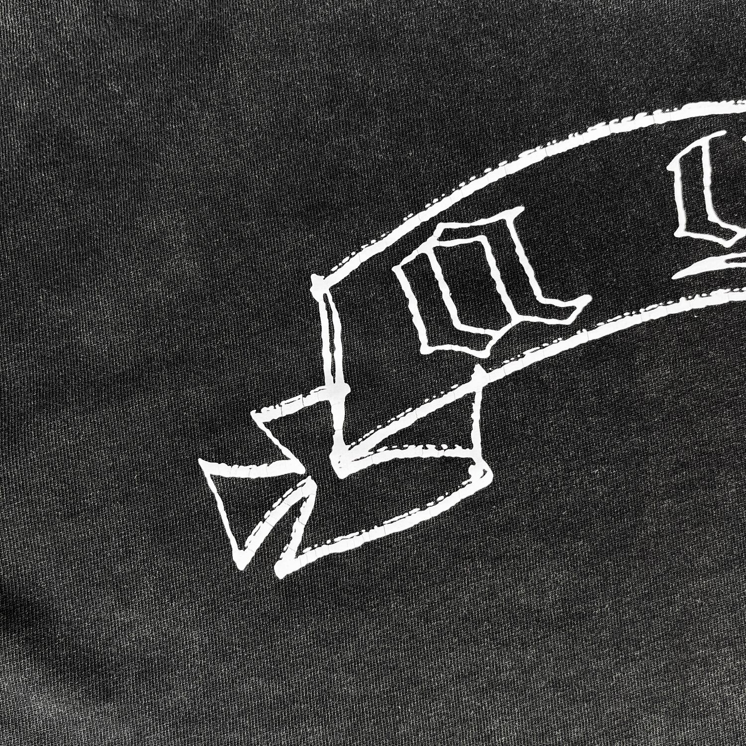 フロントにデザインがウォッシュ加工プリントで、バックにはロゴデザインがヴィンテージの経年劣化を表現する技法のプリントで落とし込まれています。