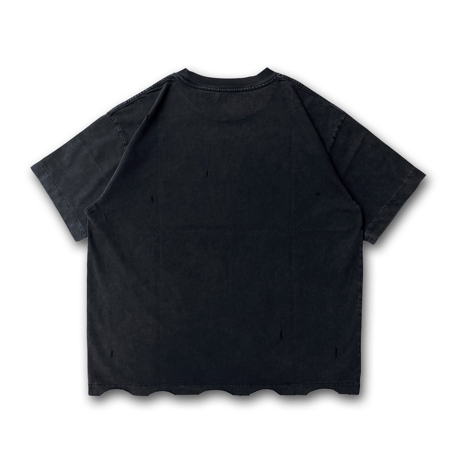 ヴィンテージウォッシュ加工とダメージ加工が施されたTシャツ。
