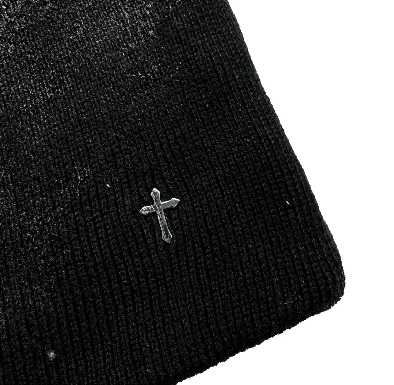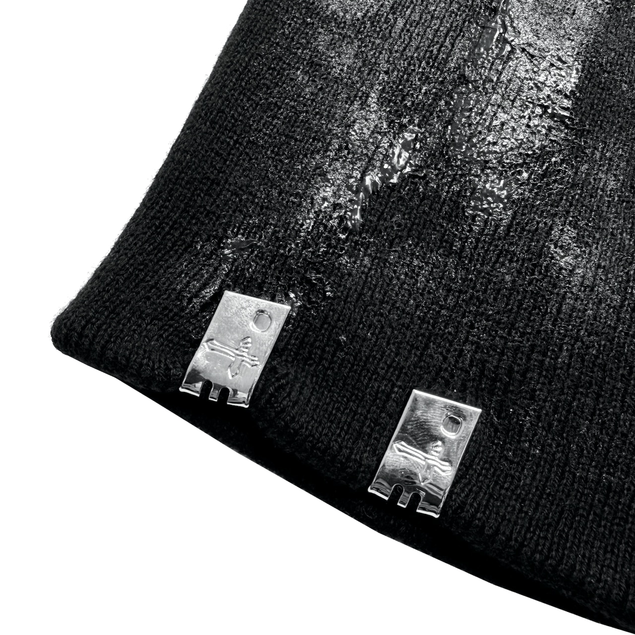 ブランドオリジナルのクロスデザインのリベット、メタルチップが付いております。