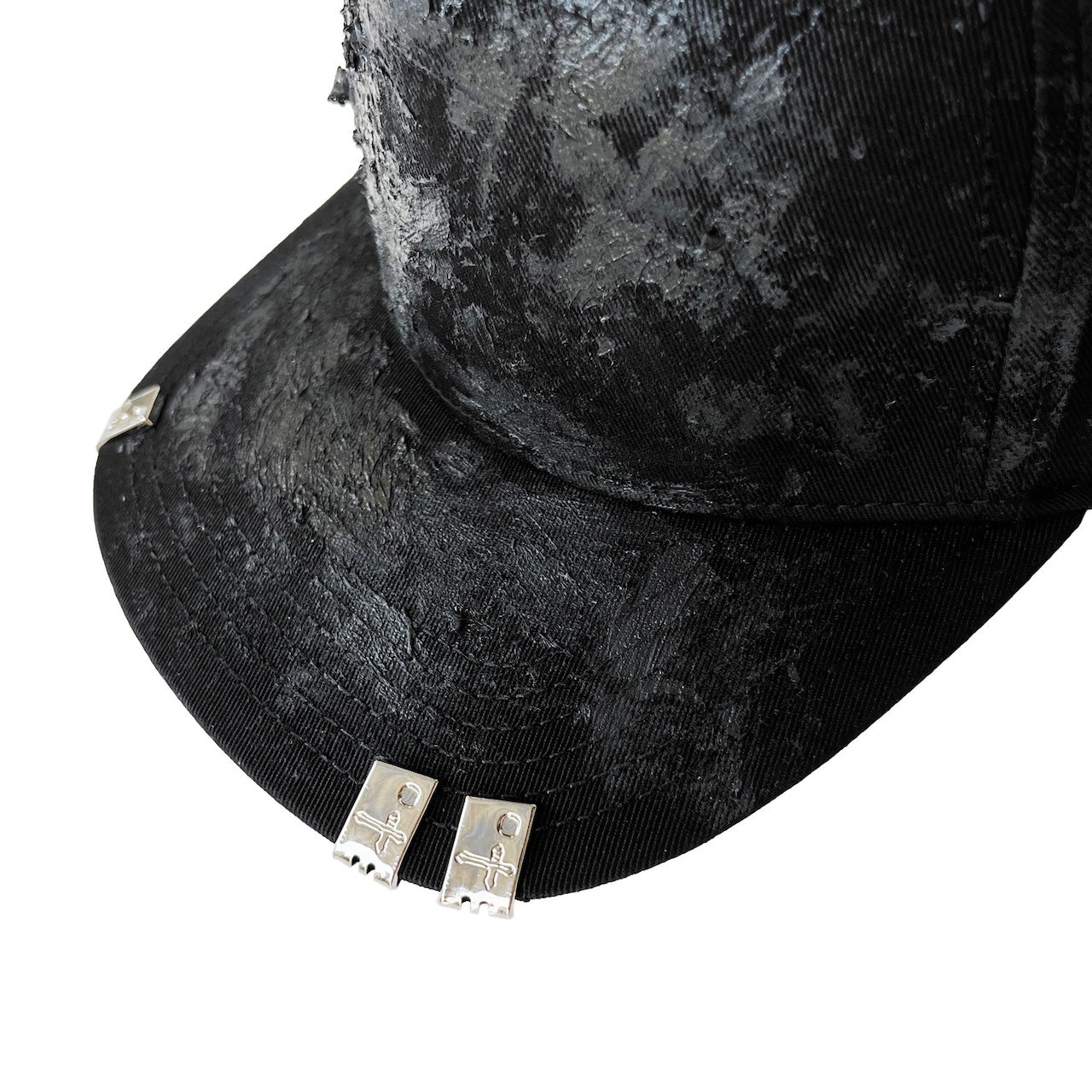 サイドにはブランドオリジナルのクロスデザインのリベット、つば部分にはメタルチップが付いております。