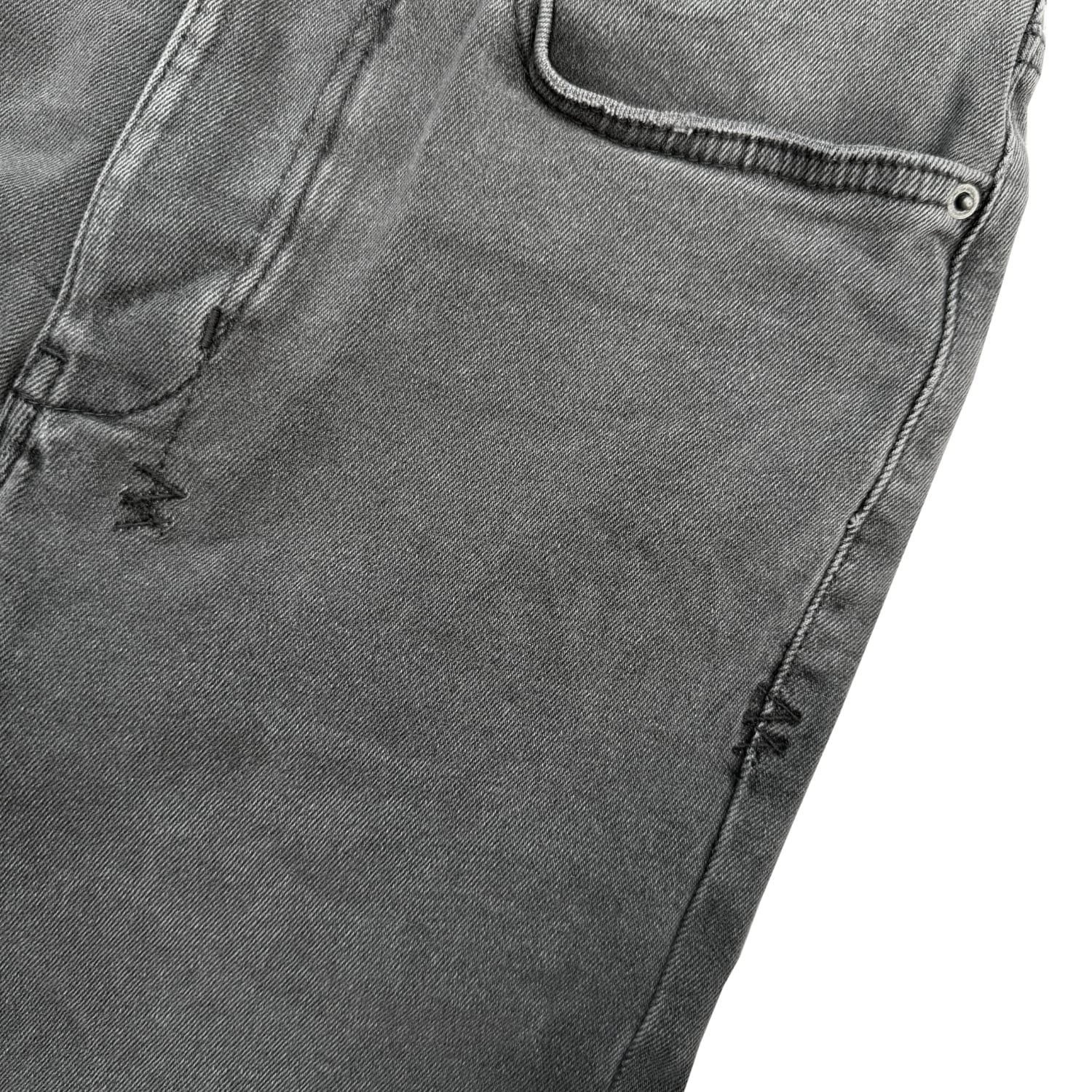 スモーキーグレーのウォッシュ加工が施されたスキニーデニム。
