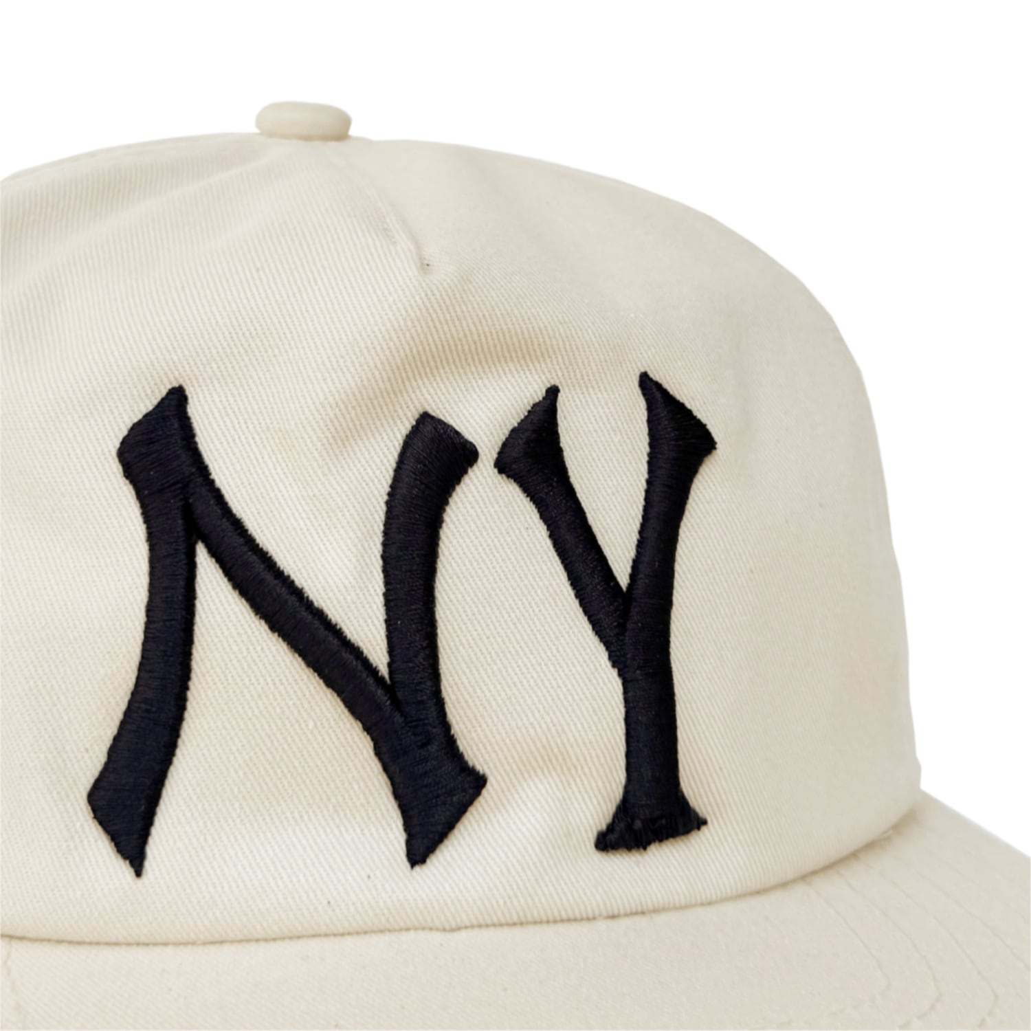 フロントにNYの3D刺繍が落とし込まれた5パネルキャップ。