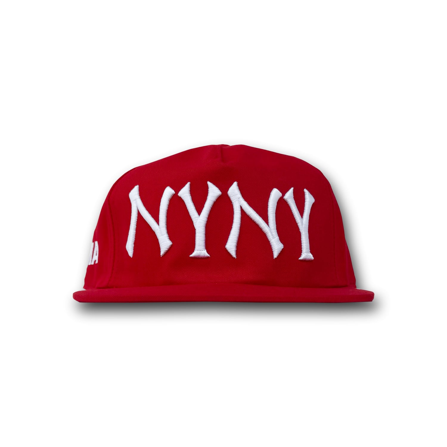 フロントにNY NYの3D刺繍が落とし込まれた5パネルキャップ。
