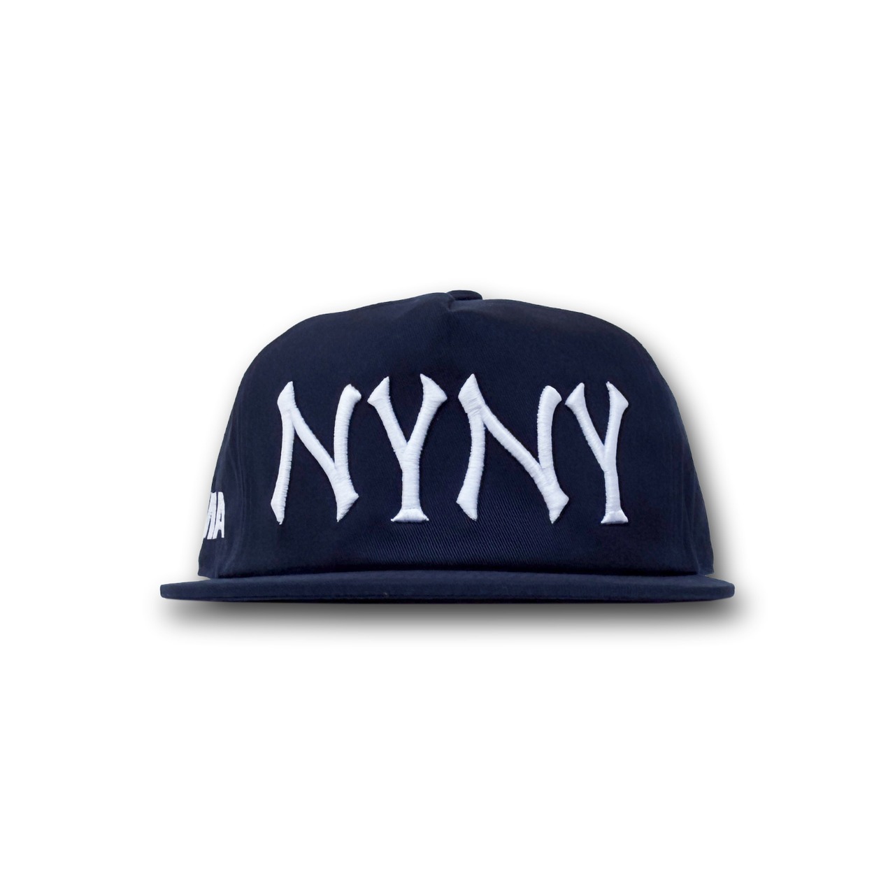 フロントにNY NYの3D刺繍が落とし込まれた5パネルキャップ。