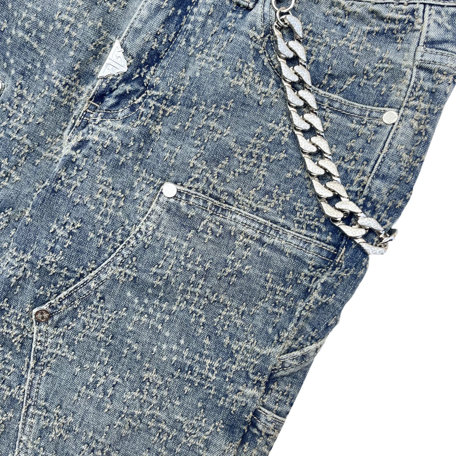 ダブルニーデザインで全体にレーザーでダメージ加工落とし込まれております。