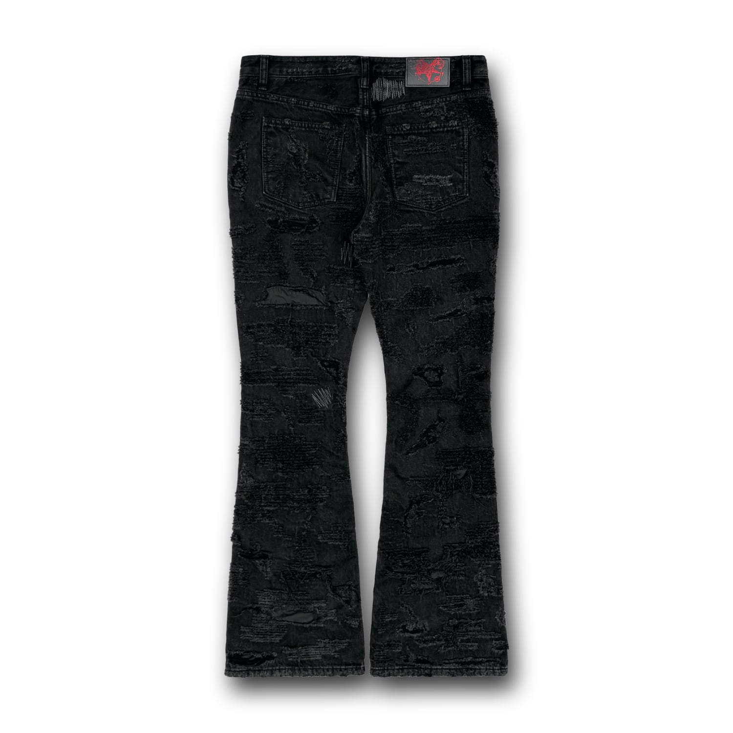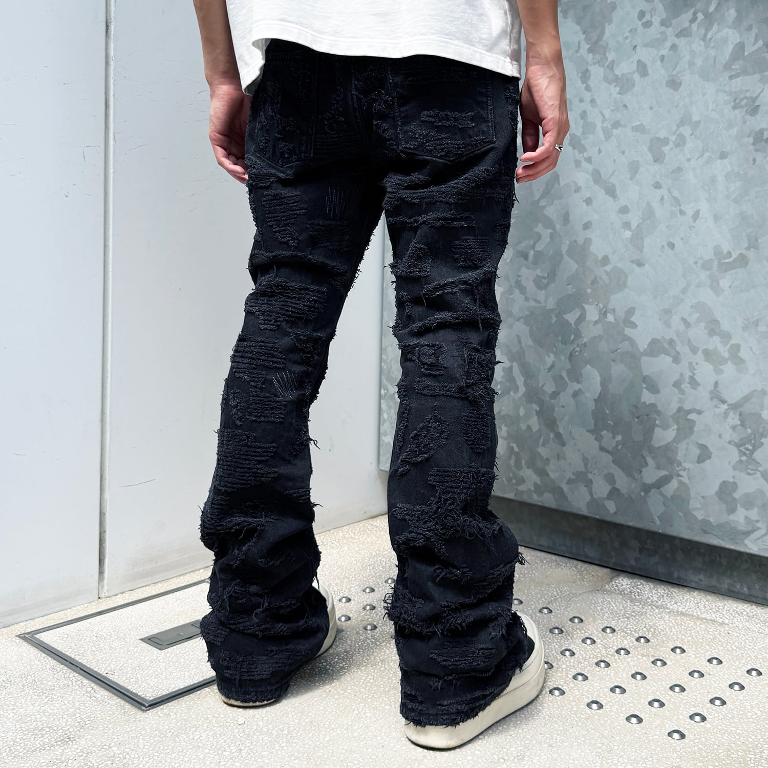 EMOSTANCECLUB / Multiple boro destroyed flared jeans