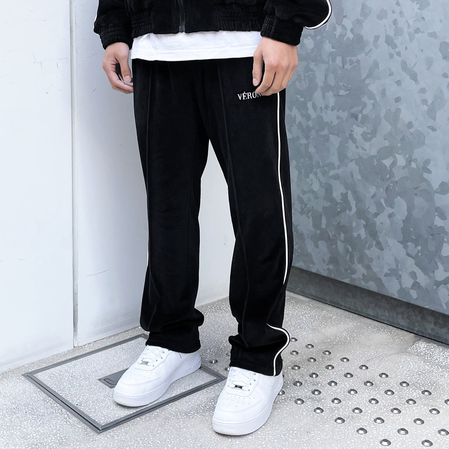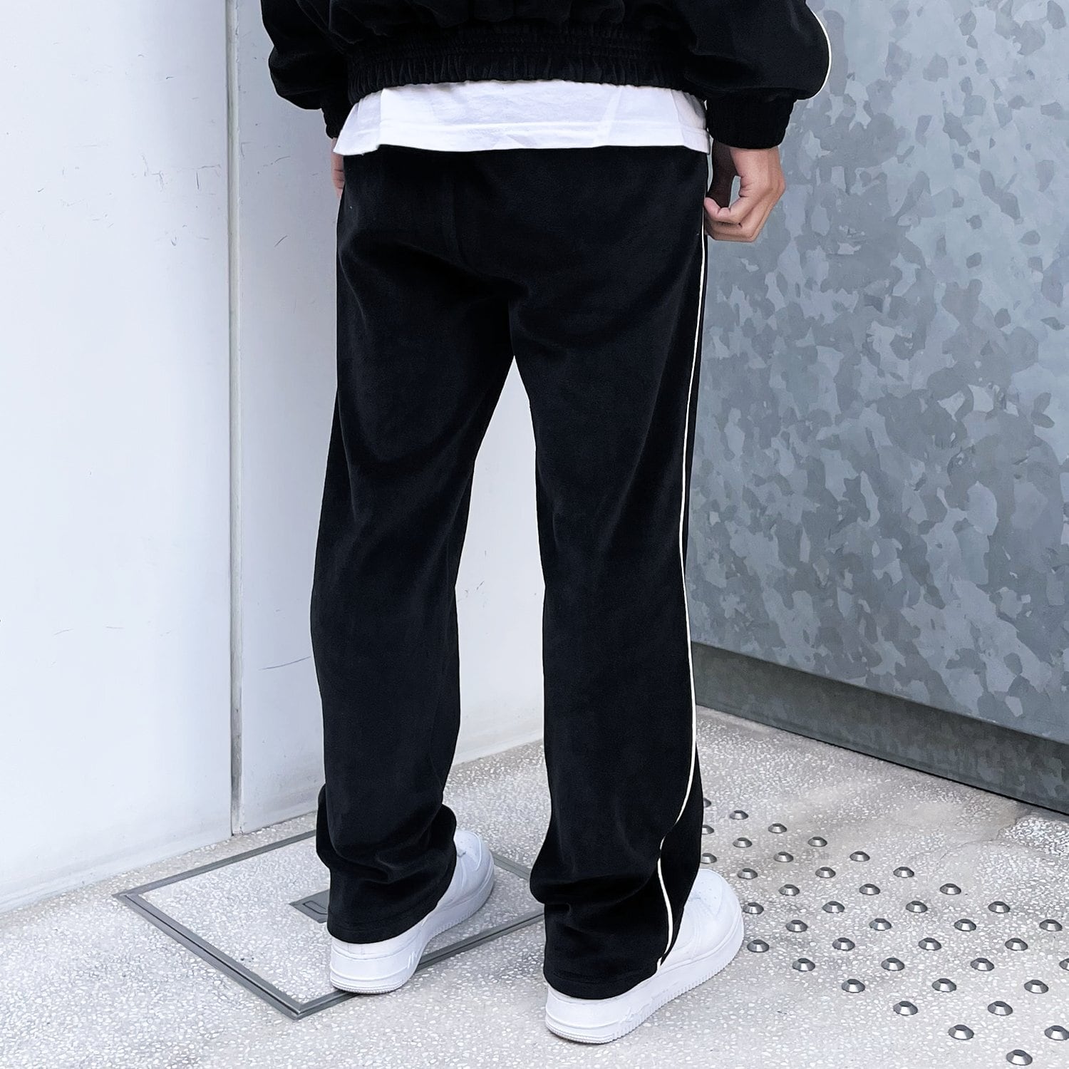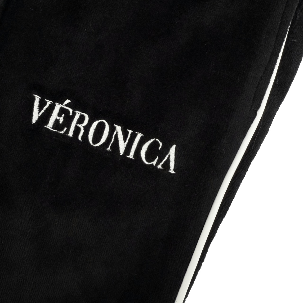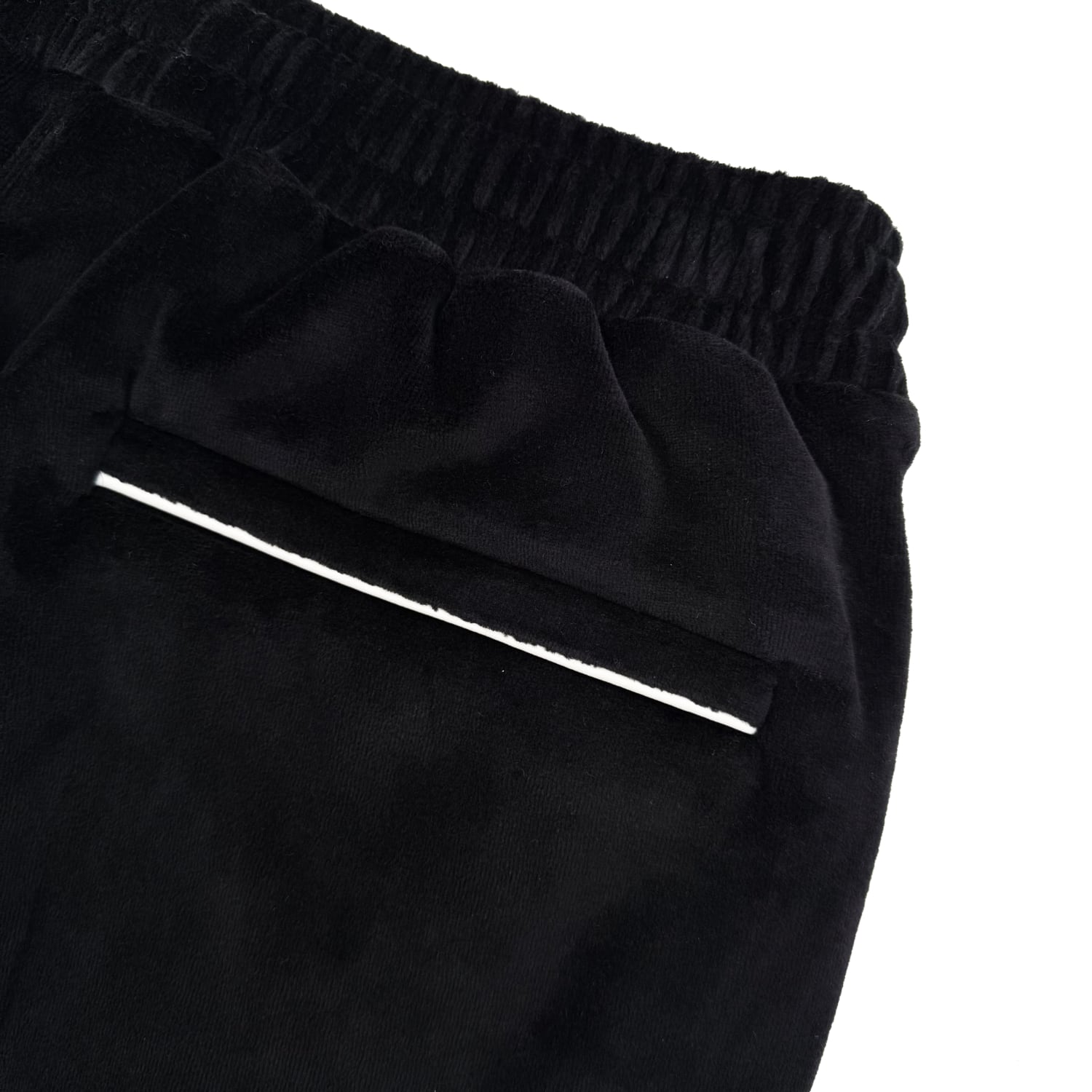 上質で肌触りの良いベルベット生地が使用されたトラックパンツ。