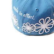 サイドとバックにフラワーデザインの刺繍パッチが施されたカスタムキャップ。