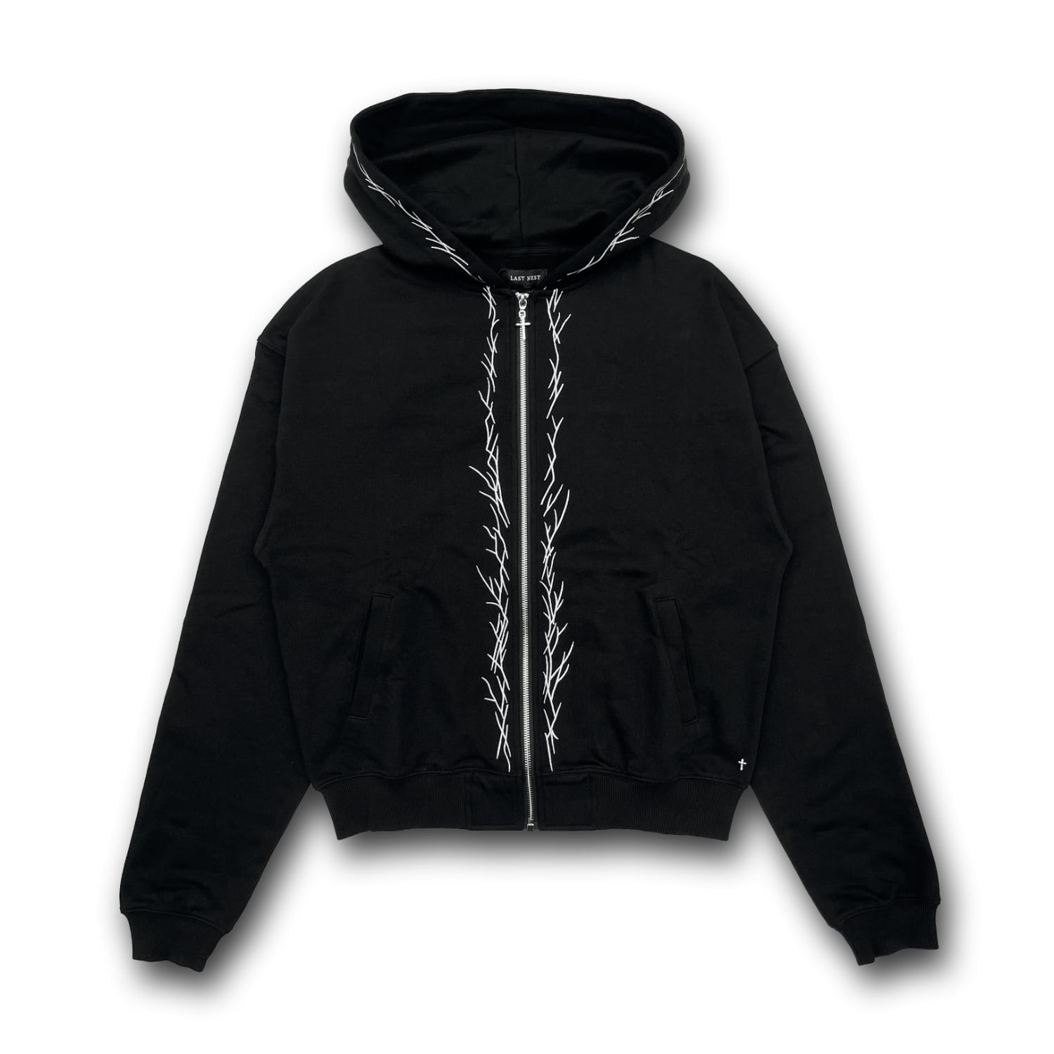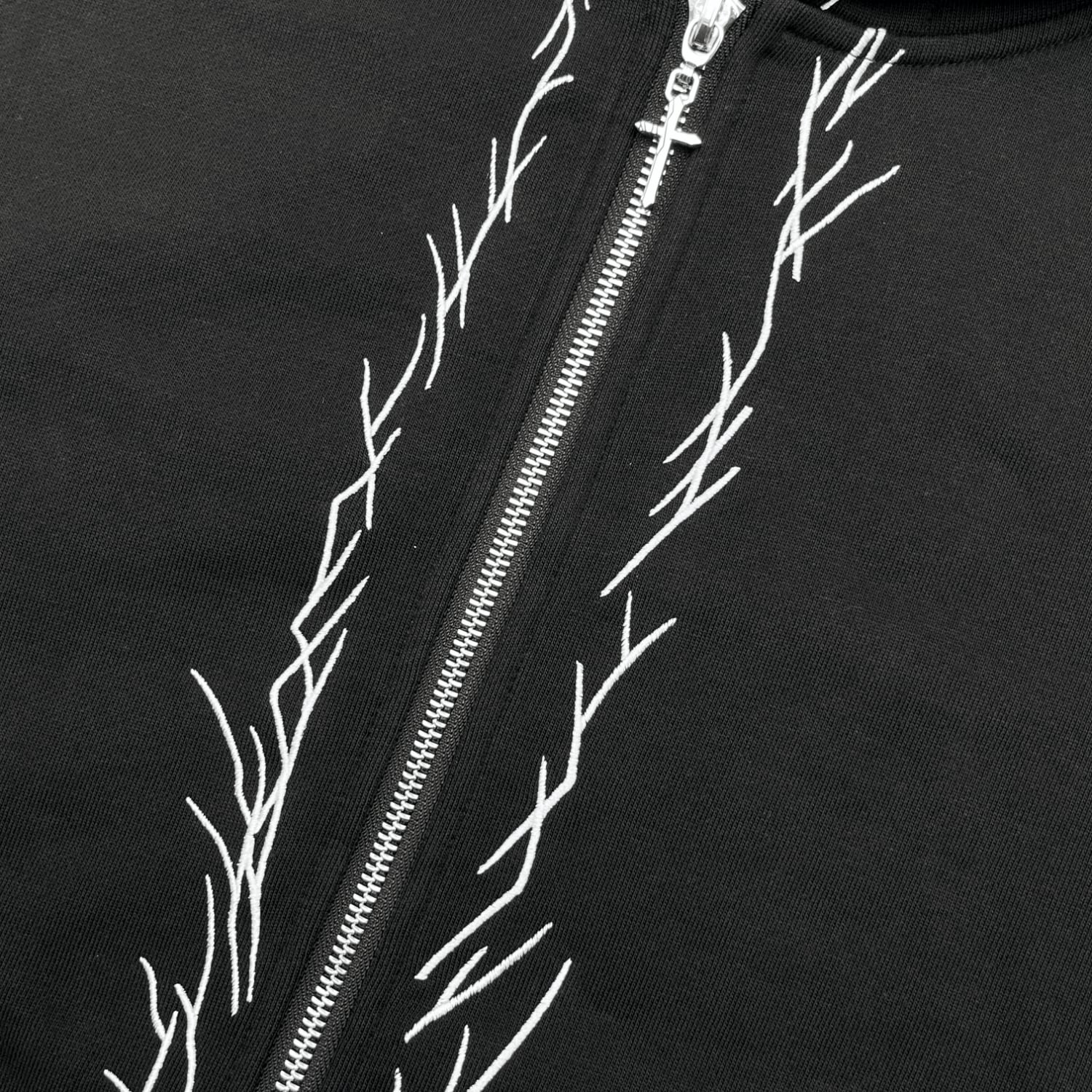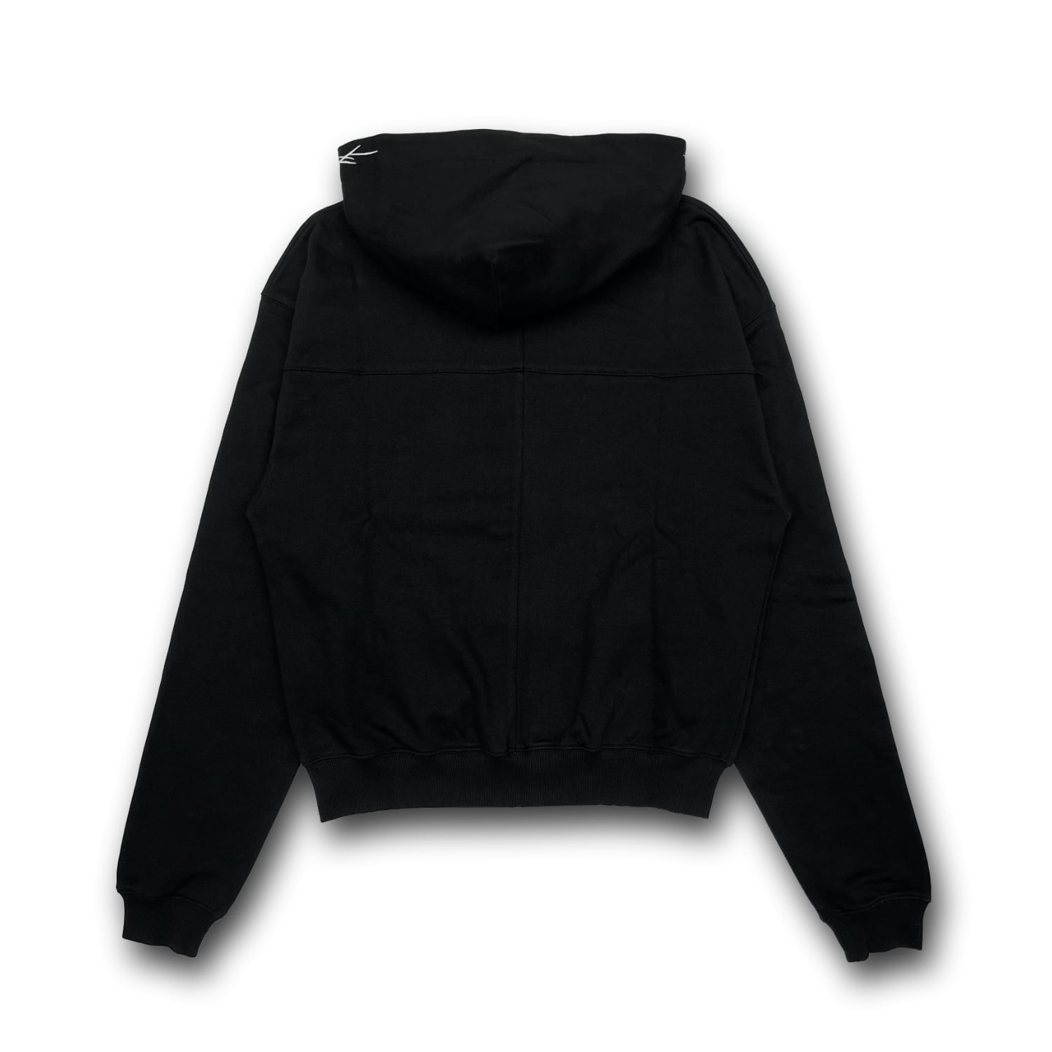 フロントにクロスデザインの引き手付きジッパー、バックにはクロスのステッチが入ったデザイン。