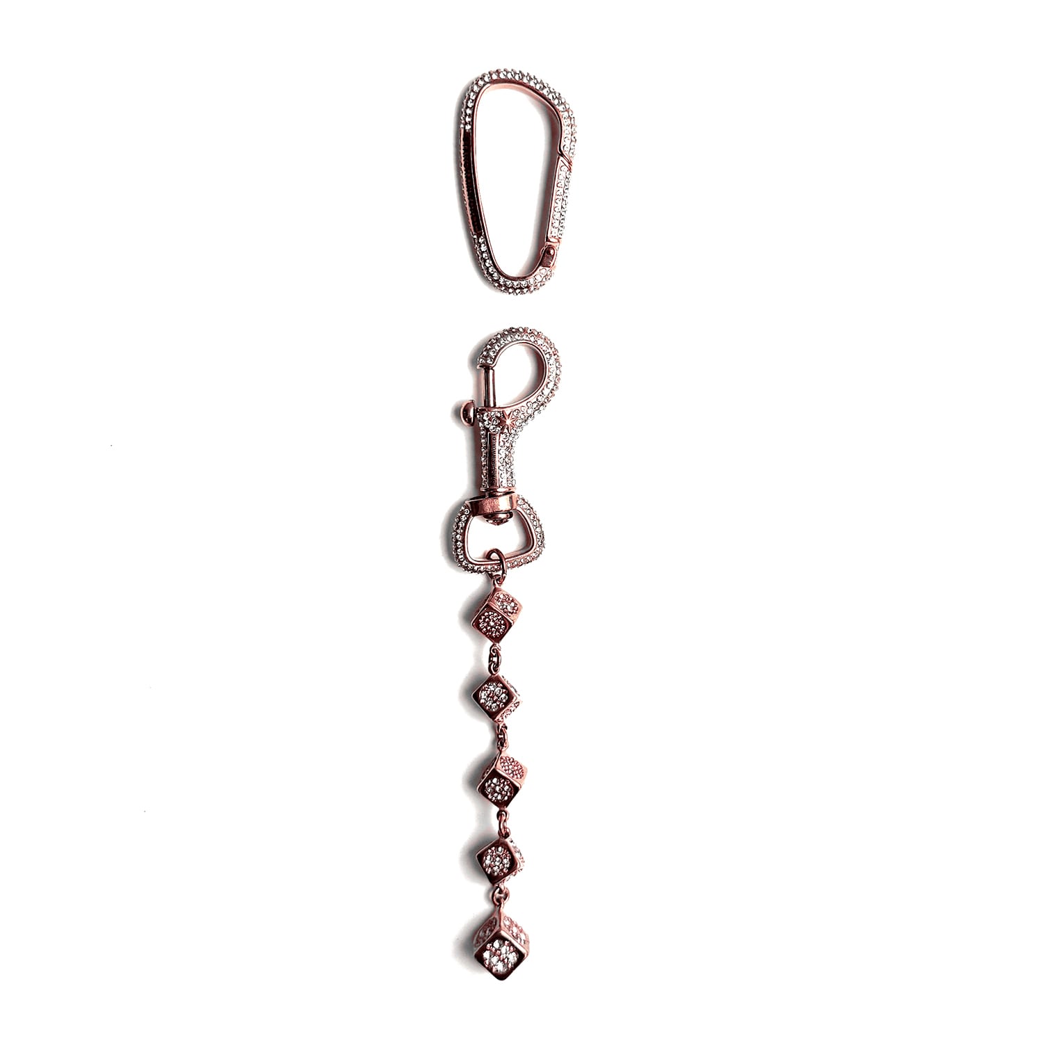 カラビナが付属し、キーチェーン先端にはロブスタークラスプ留め。