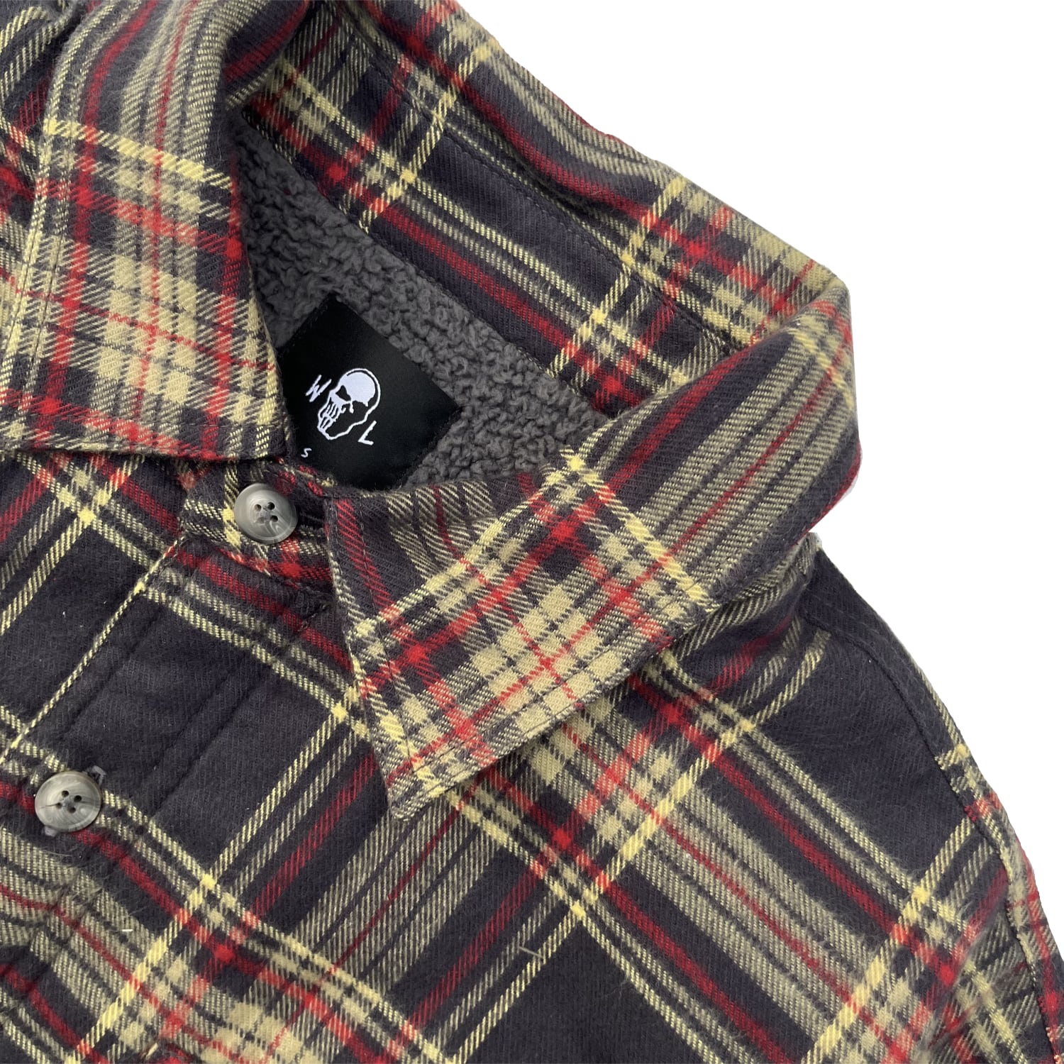 肉厚なコットン生地が使用されたチェック柄のシャツジャッケット。