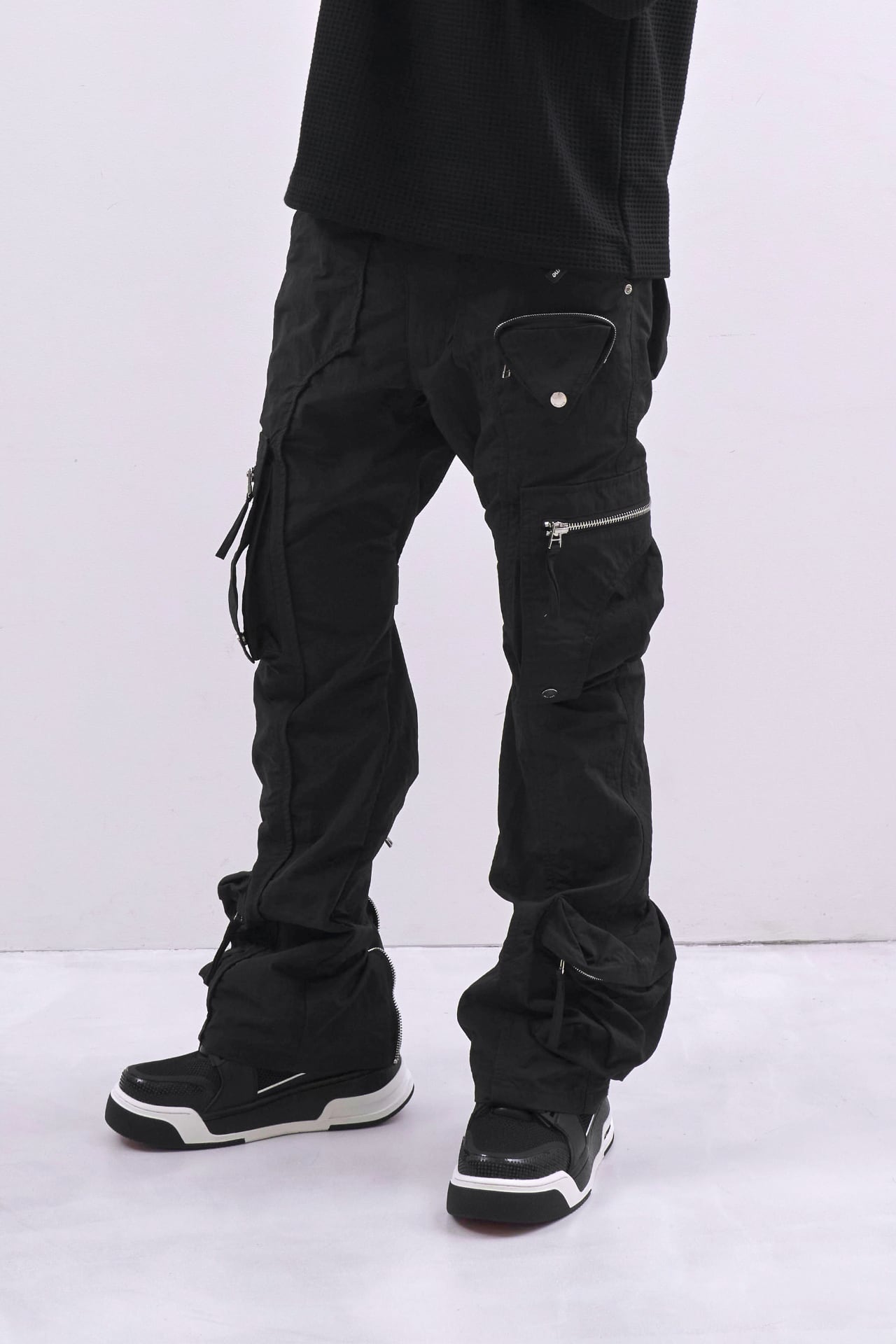 MLVINCEのパンツならではのギミックを継承しており、マジックテープによりシルエットの調節や、裾のジップによりストレートとフレアの変更が可能です。