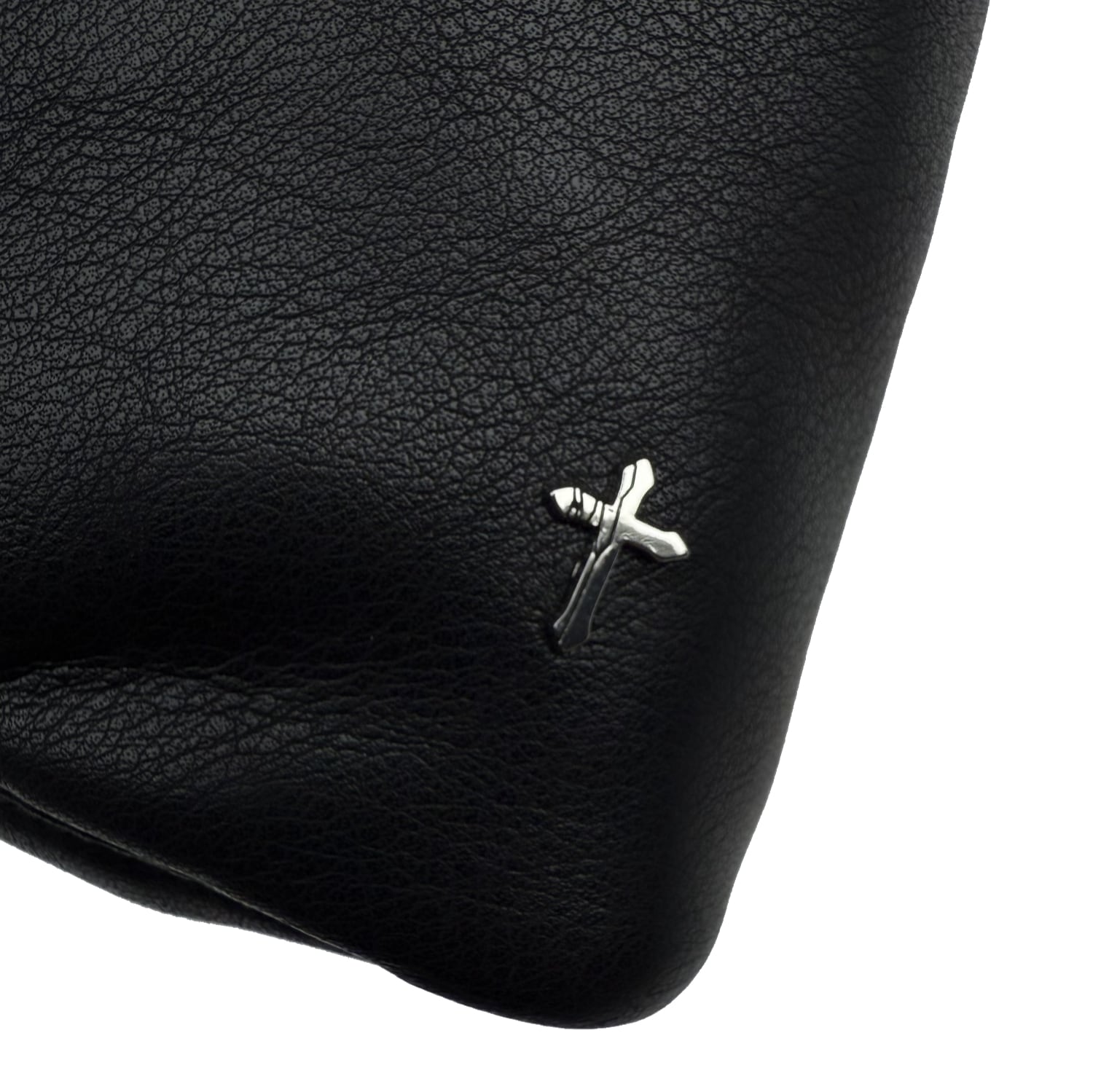 フロントにクロスデザインの引き手付きジッパー。