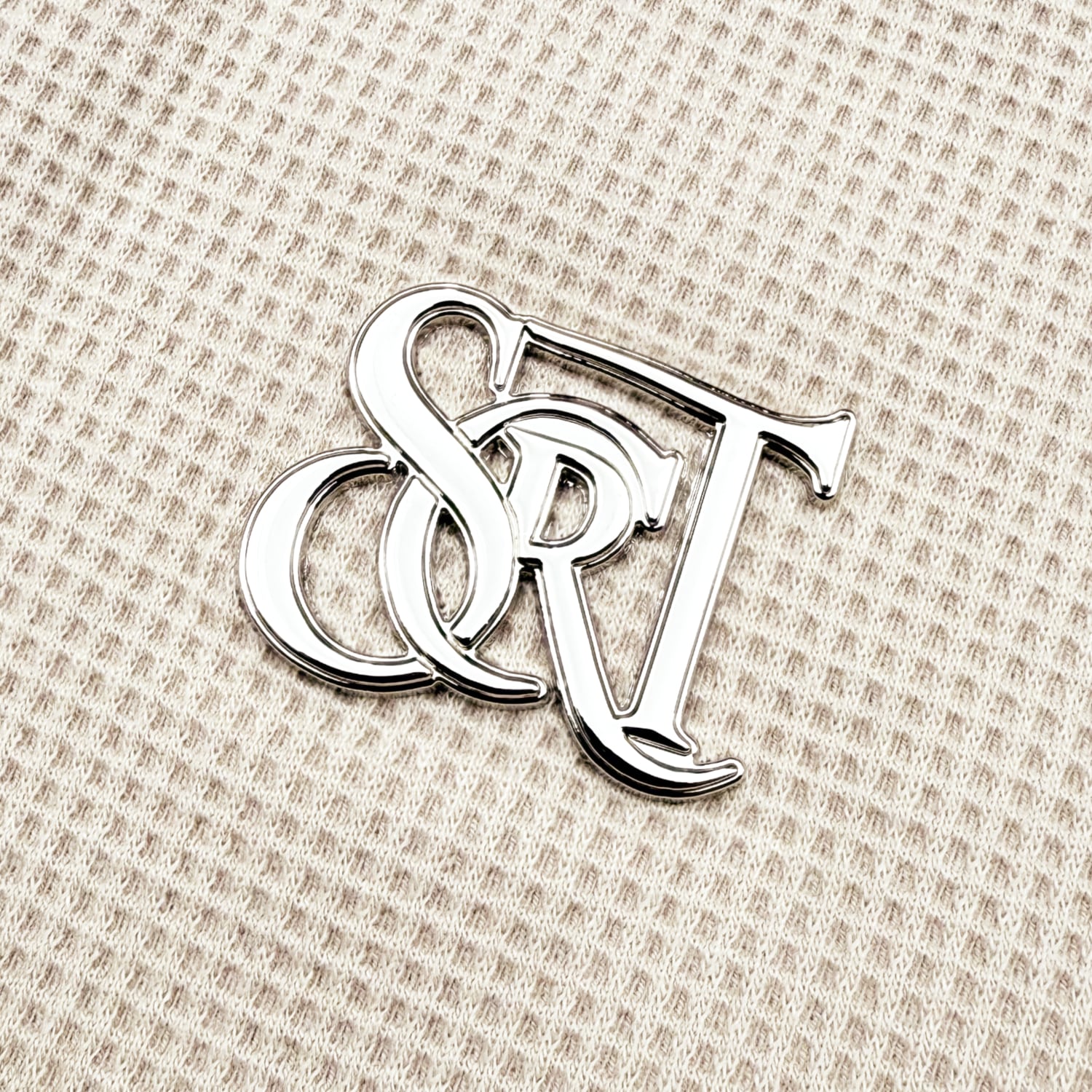 フロント左胸部分にはメタルパーツでブランドロゴデザインが付いております。