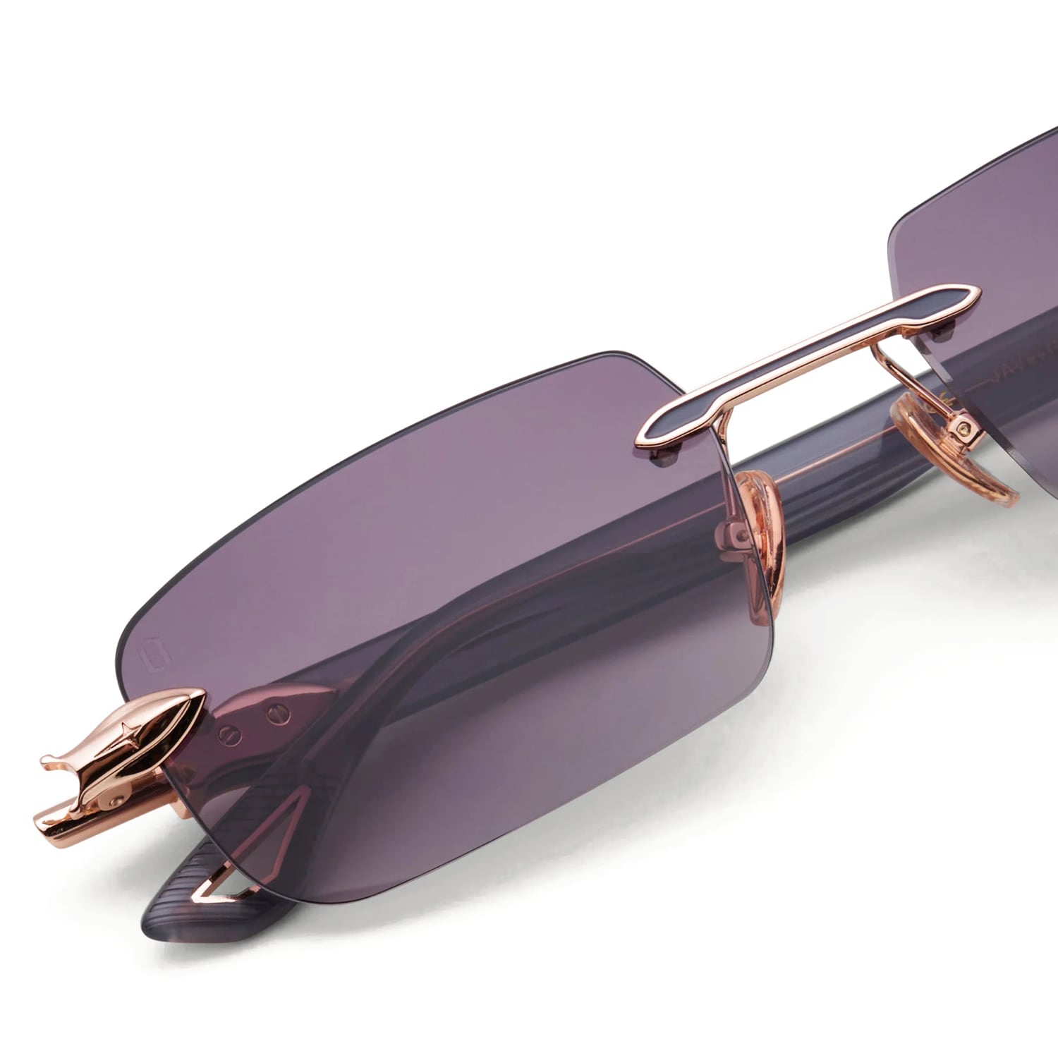 ブランドのマスターピースであるリムレスデザインのサングラス。