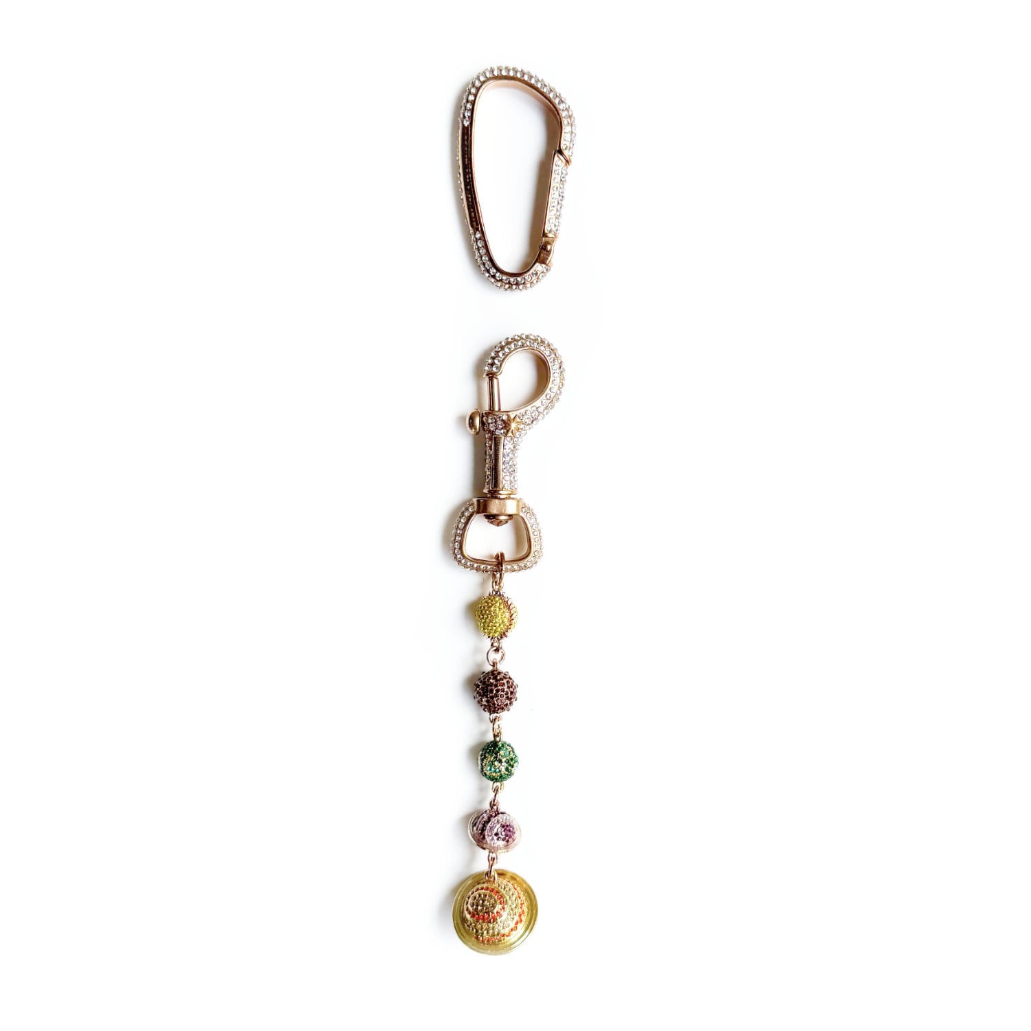 カラビナが付属し、キーチェーン先端にはロブスタークラスプ留め。
