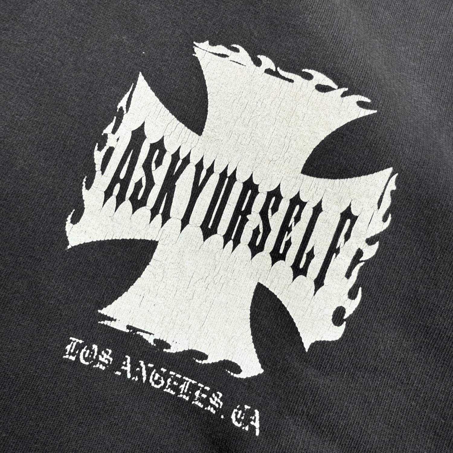 フロントとバック、袖部分にはヴィンテージの経年劣化を表現する技法のプリントでデザインが落とし込まれております。