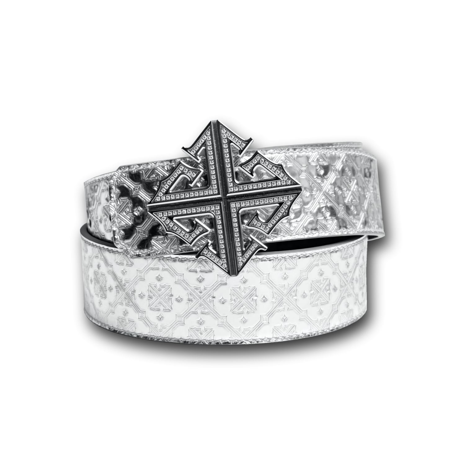 ブランドロゴデザインのバックルにはラインストーンが施されております。