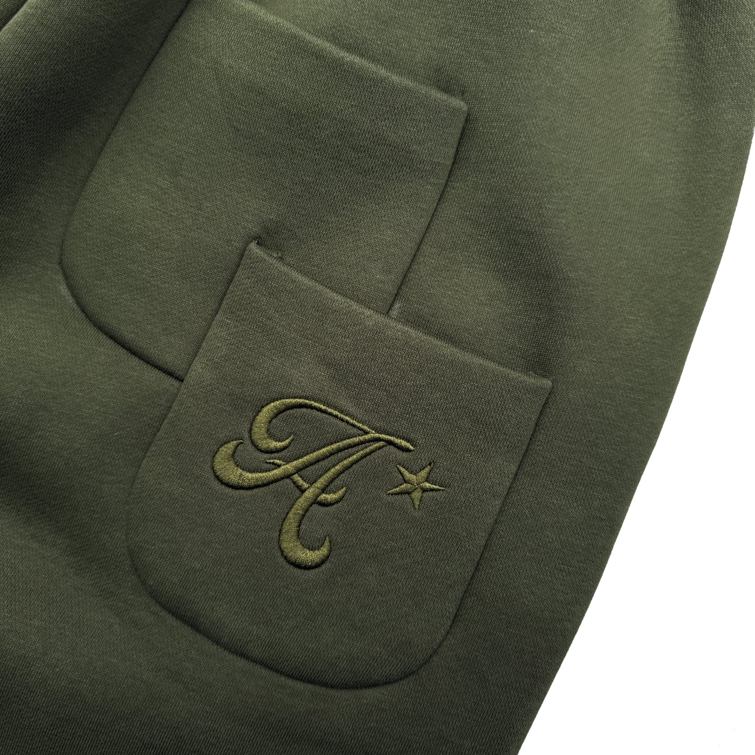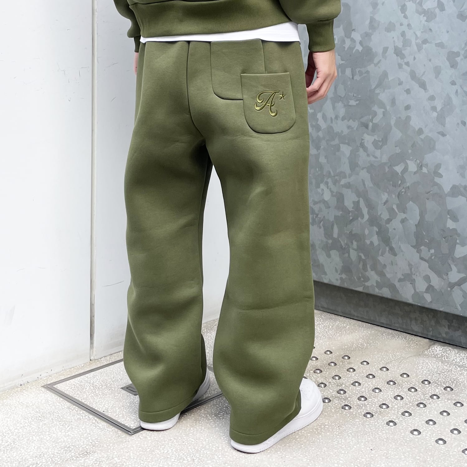 バックポケットは二重のデザインとなっており、ブランドのグラフィックロゴデザインが同色の刺繍で落とし込まれております。
