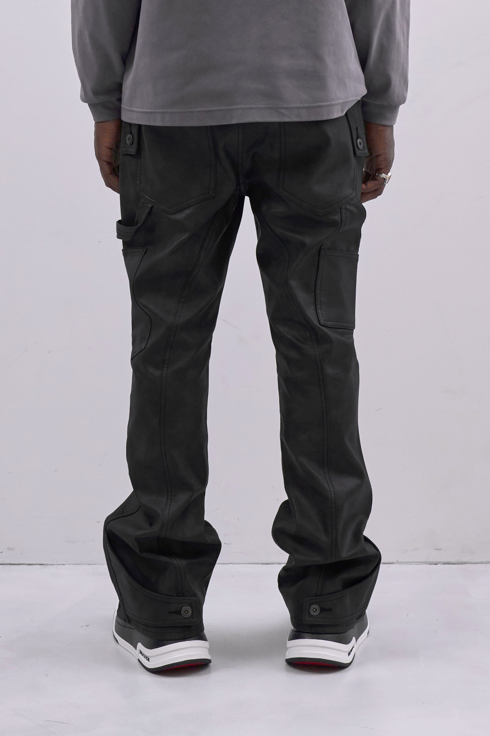 エコレザーを使用したフレアパンツの登場。