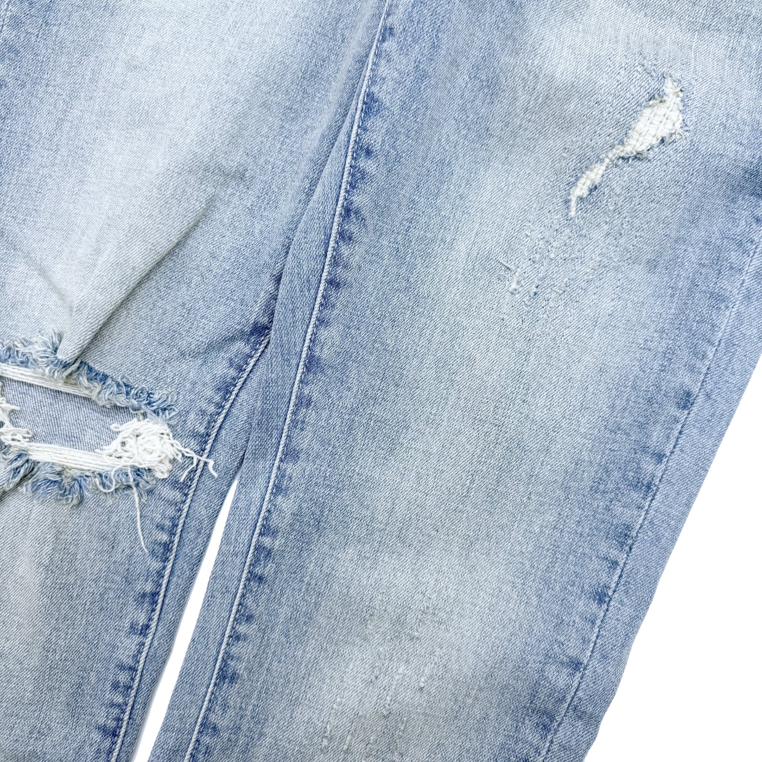 ヴィンテージのウォッシュ加工と3Dシワ加工、細かいダメージとタタキ加工、後ろポケットにブランドの織りタグ。