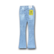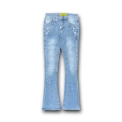 伸縮性のあるストレッチが効いたフレアレッグシルエットのデニムパンツ。