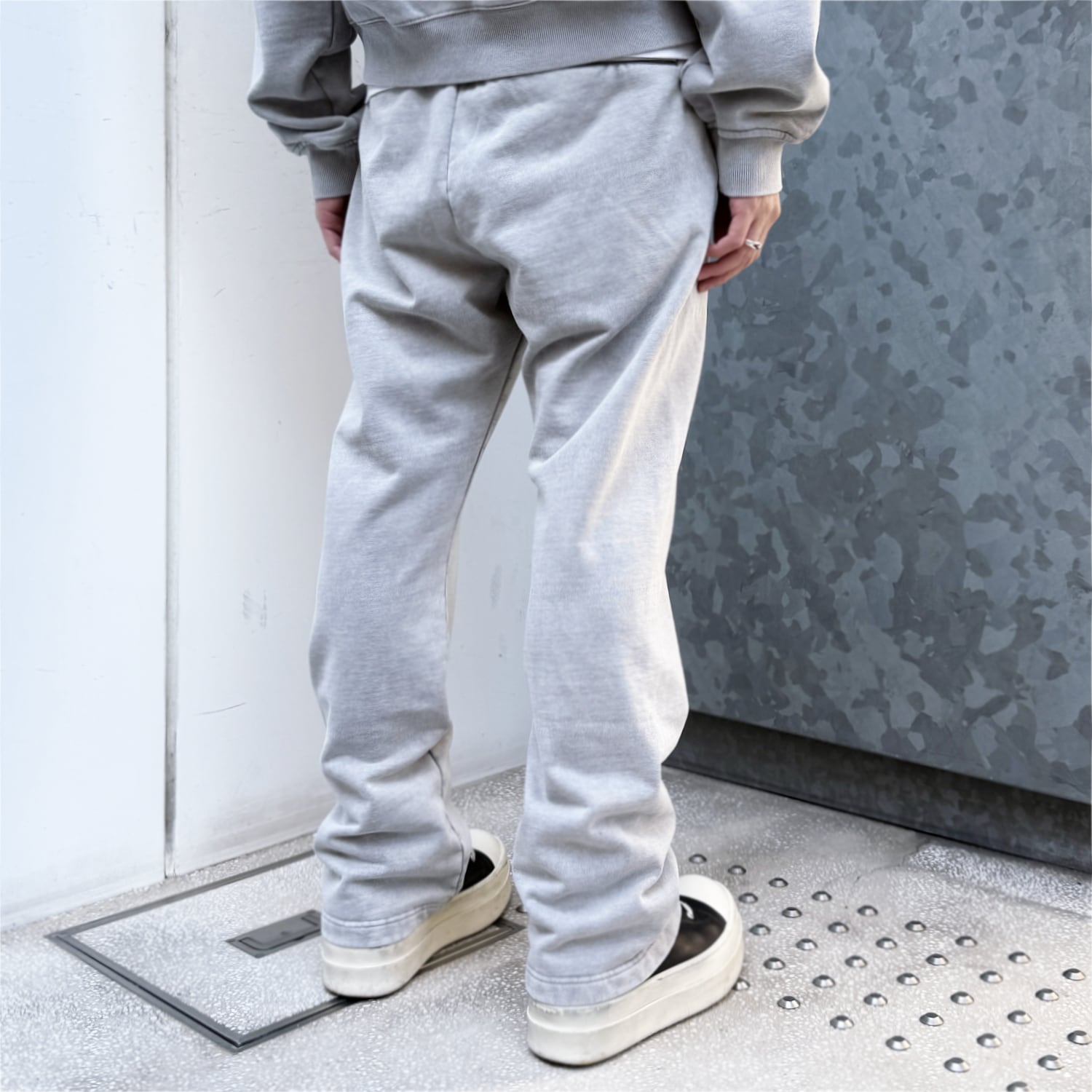 ヴィンテージの風合いが表現されたウォッシュ加工が施されたスウェットパンツ。