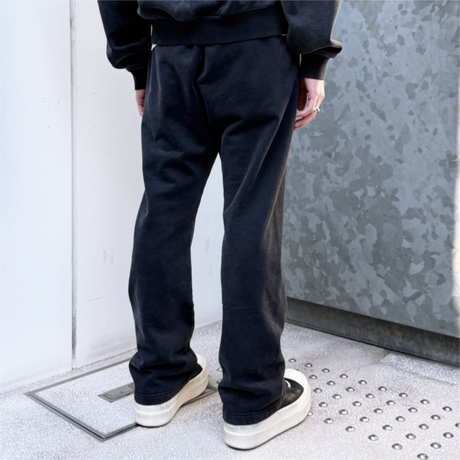 ヴィンテージの風合いが表現されたウォッシュ加工が施されたスウェットパンツ。