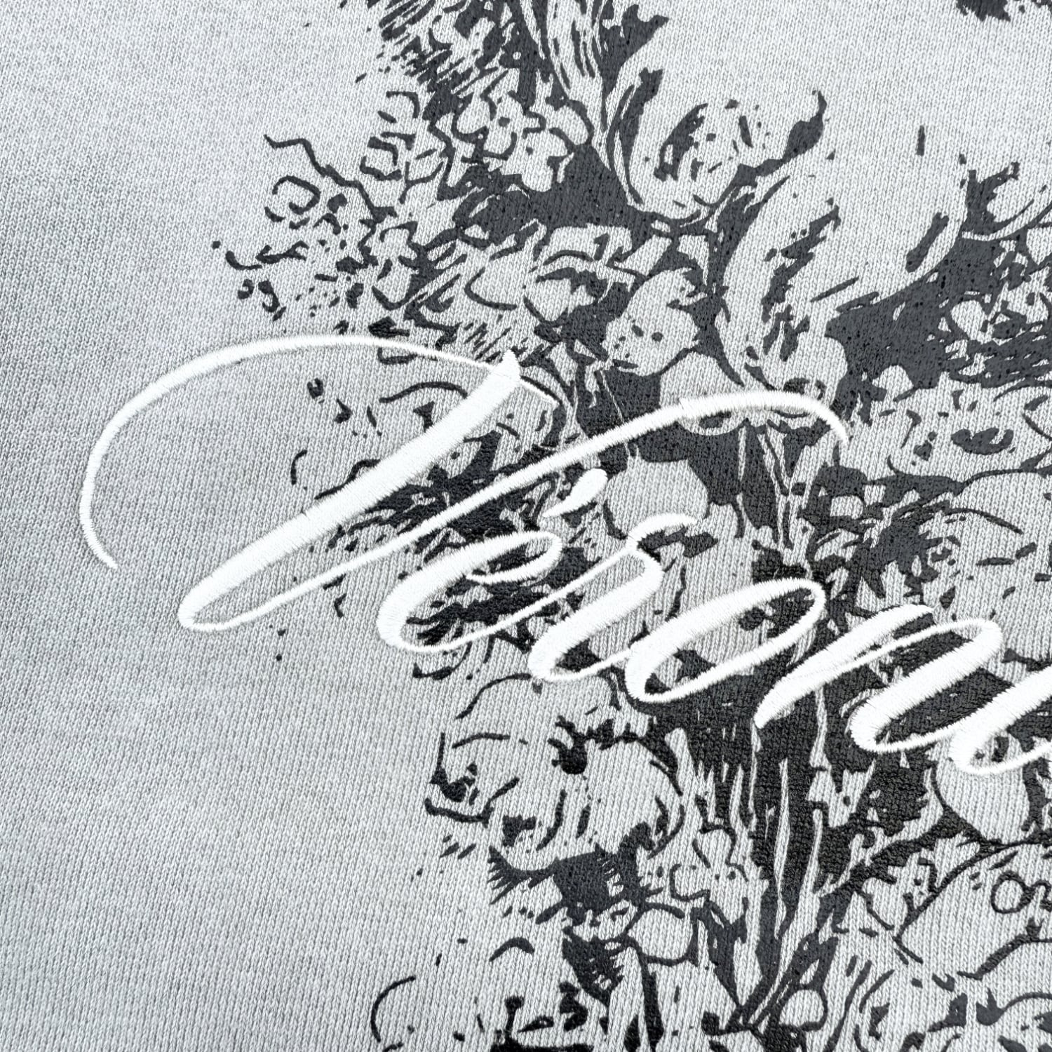 フロントとバックにグラフィックデザイン、バックにはテキストデザインが刺繍で落とし込まれております。