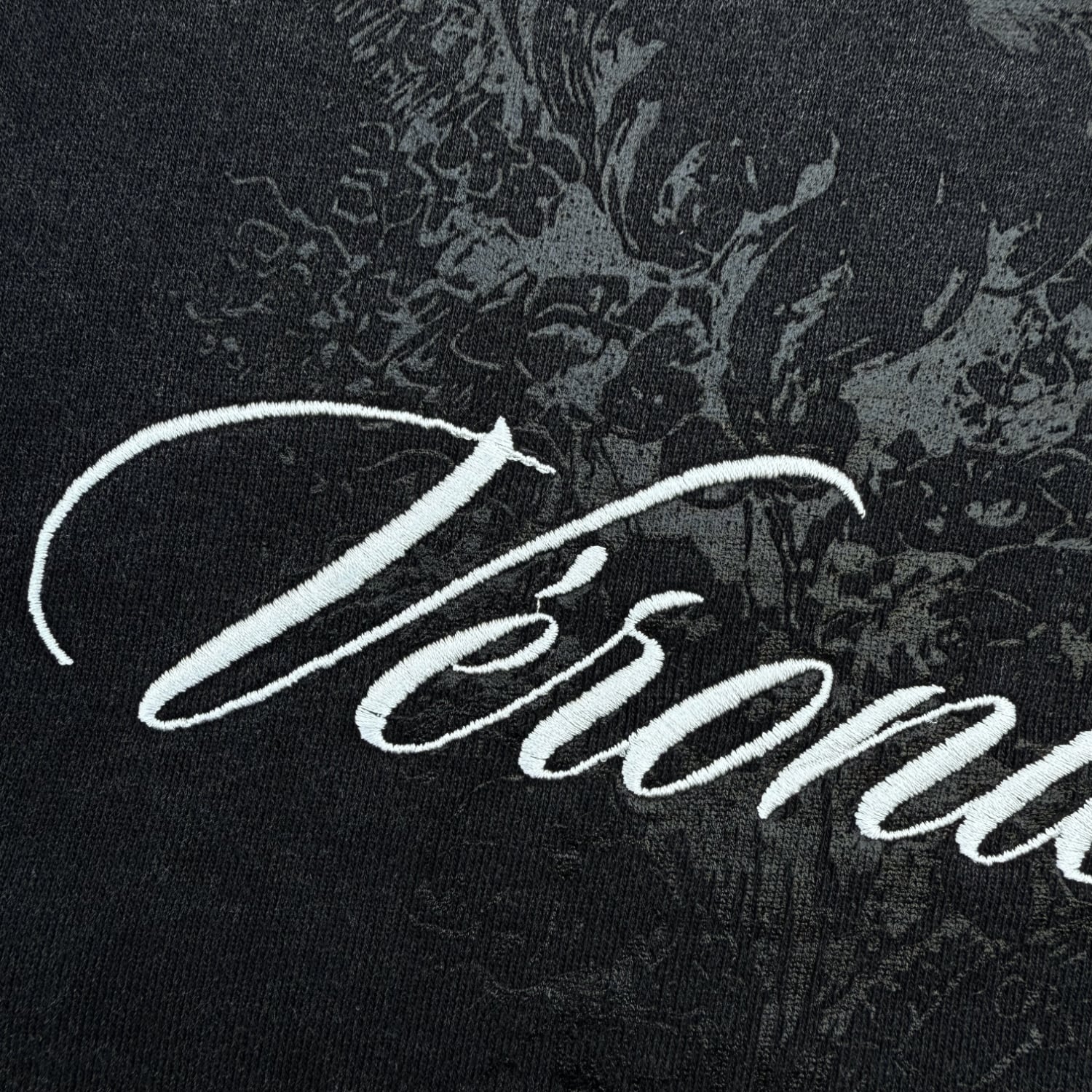フロントとバックにグラフィックデザイン、バックにはテキストデザインが刺繍で落とし込まれております。