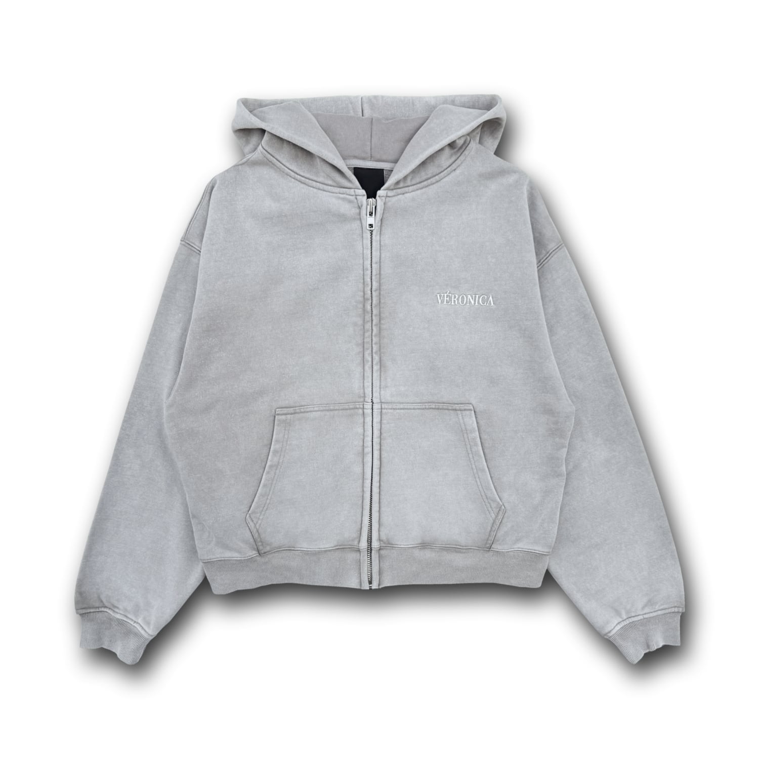 ヴィンテージの風合いが表現されたウォッシュ加工が施されたジップフーディー。