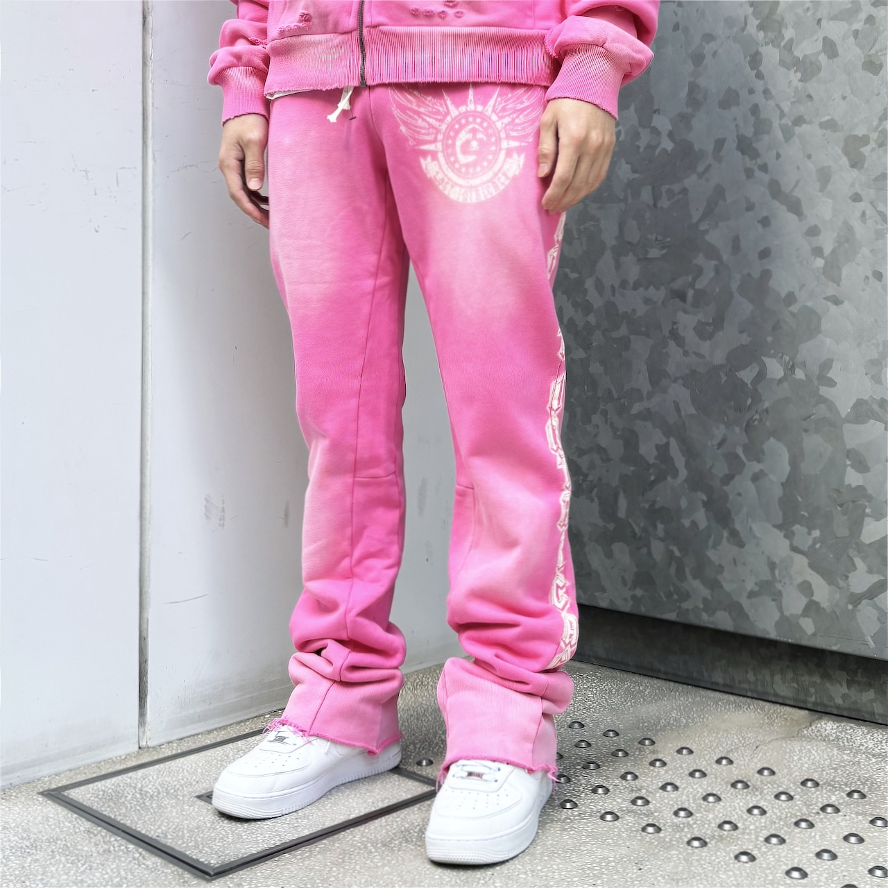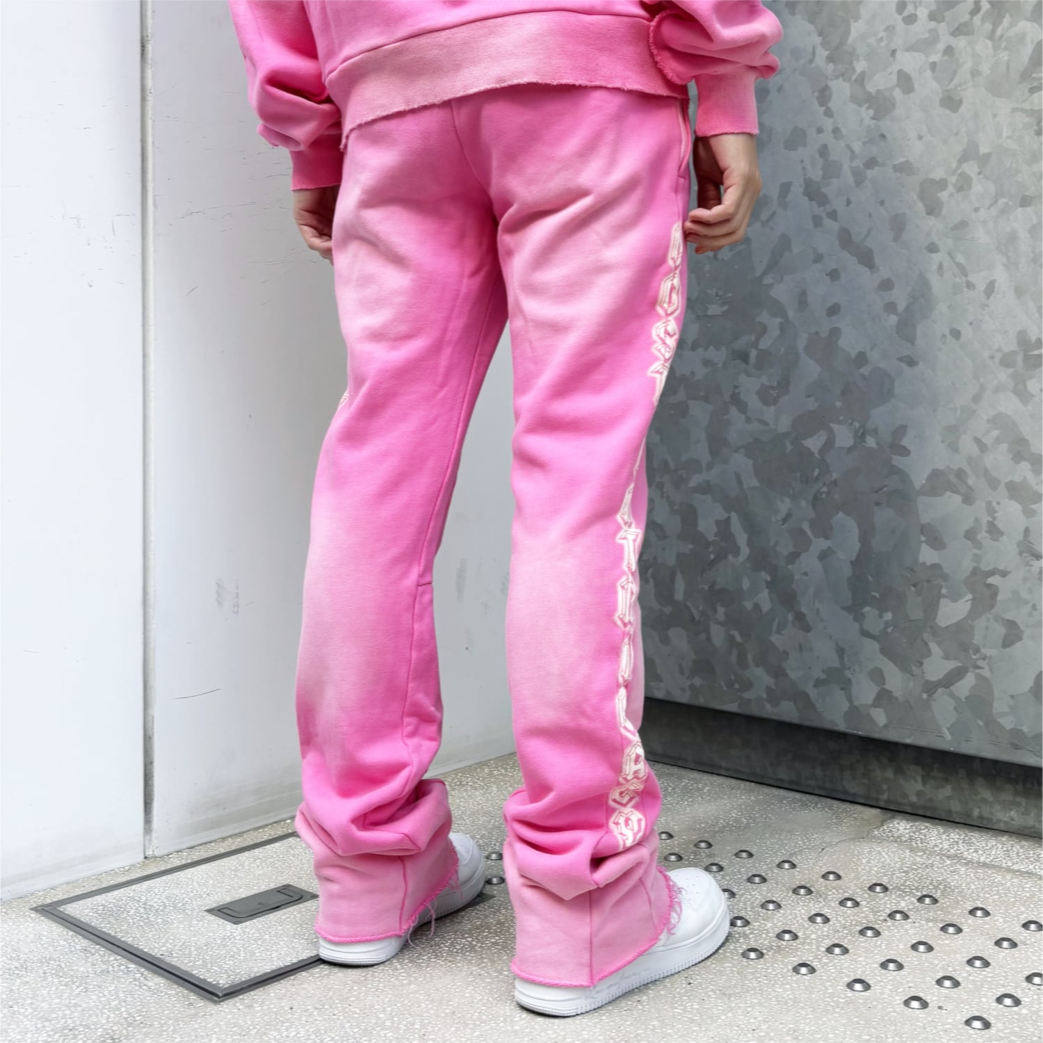 ヴィンテージのフェード加工が施されたフレアシルエットのスウェットパンツ。