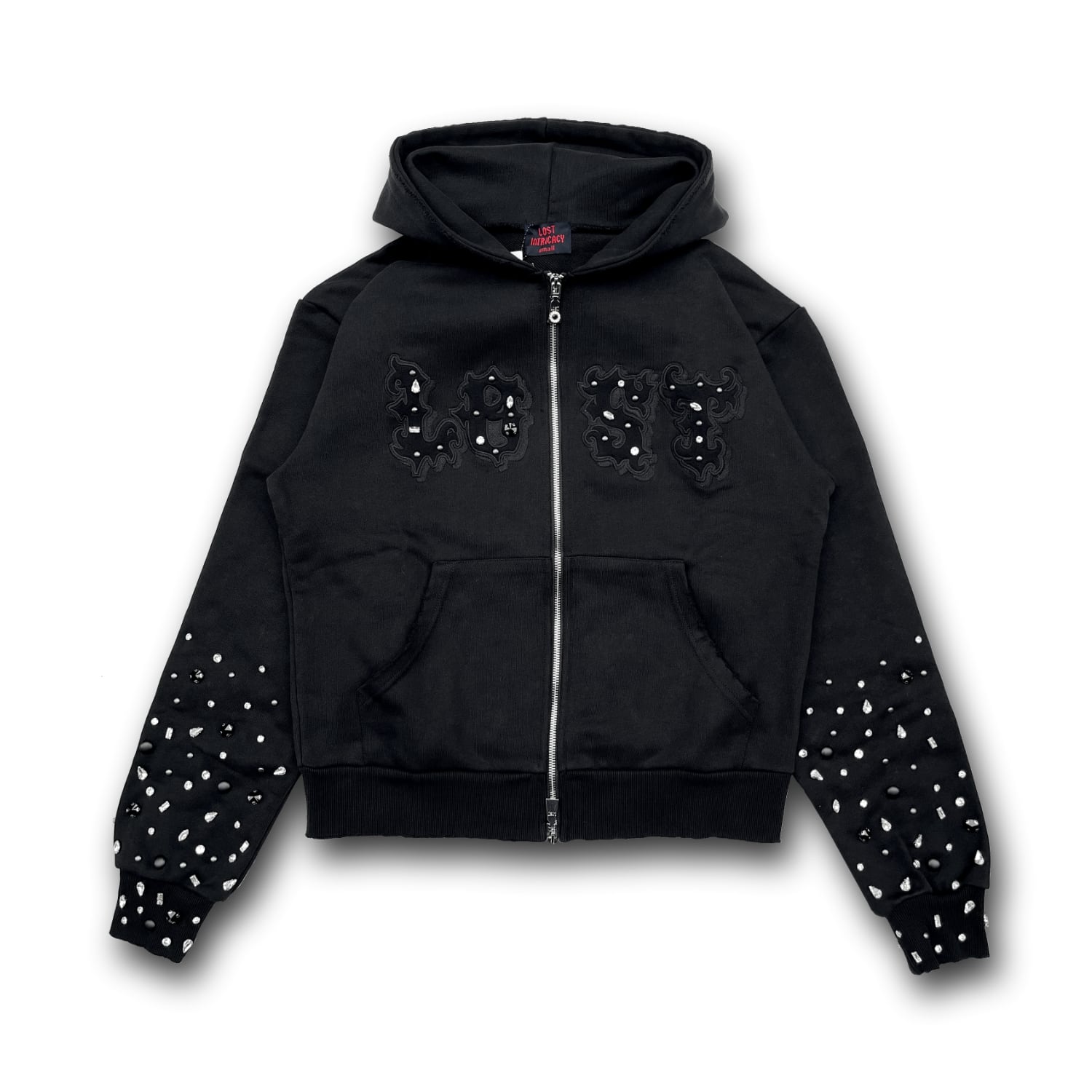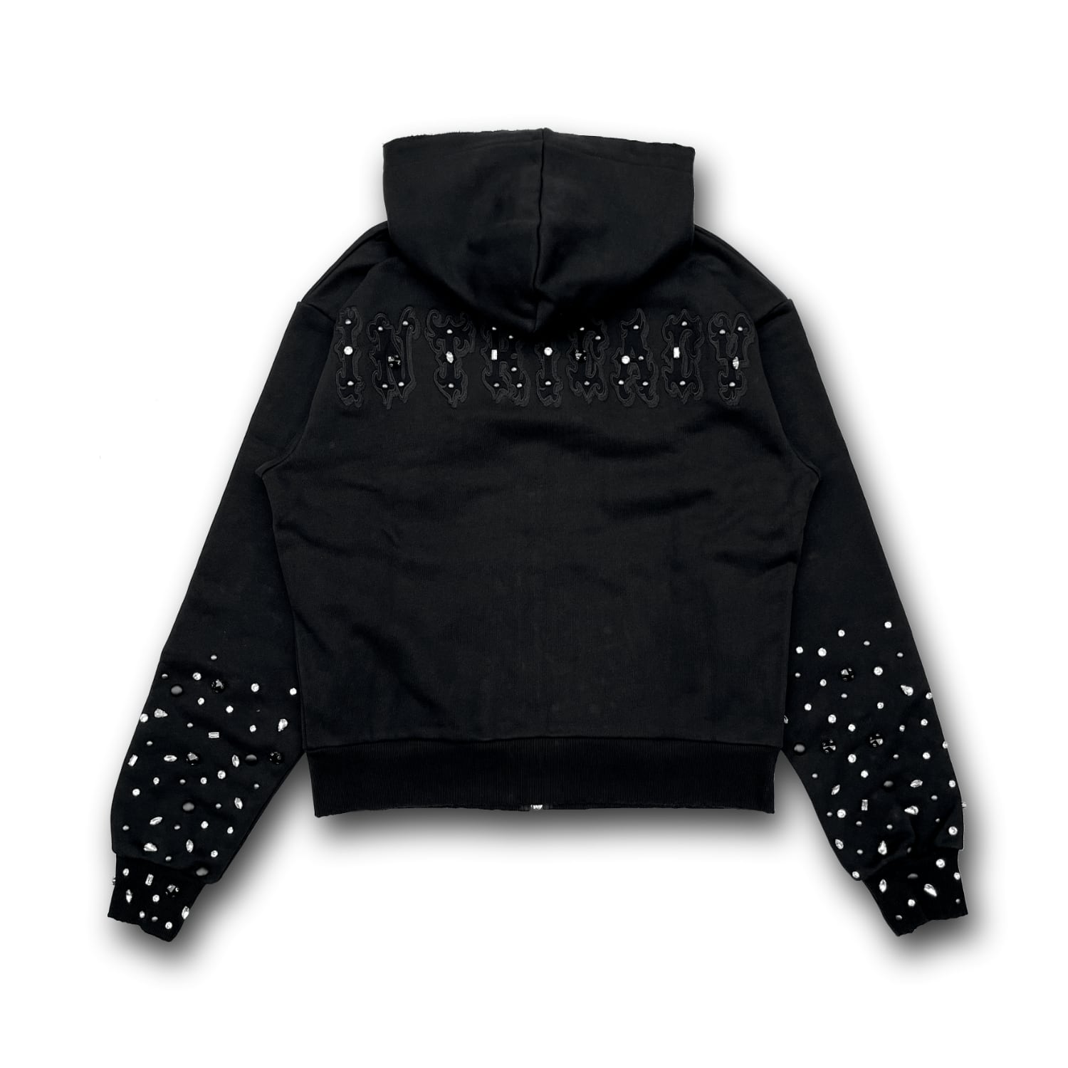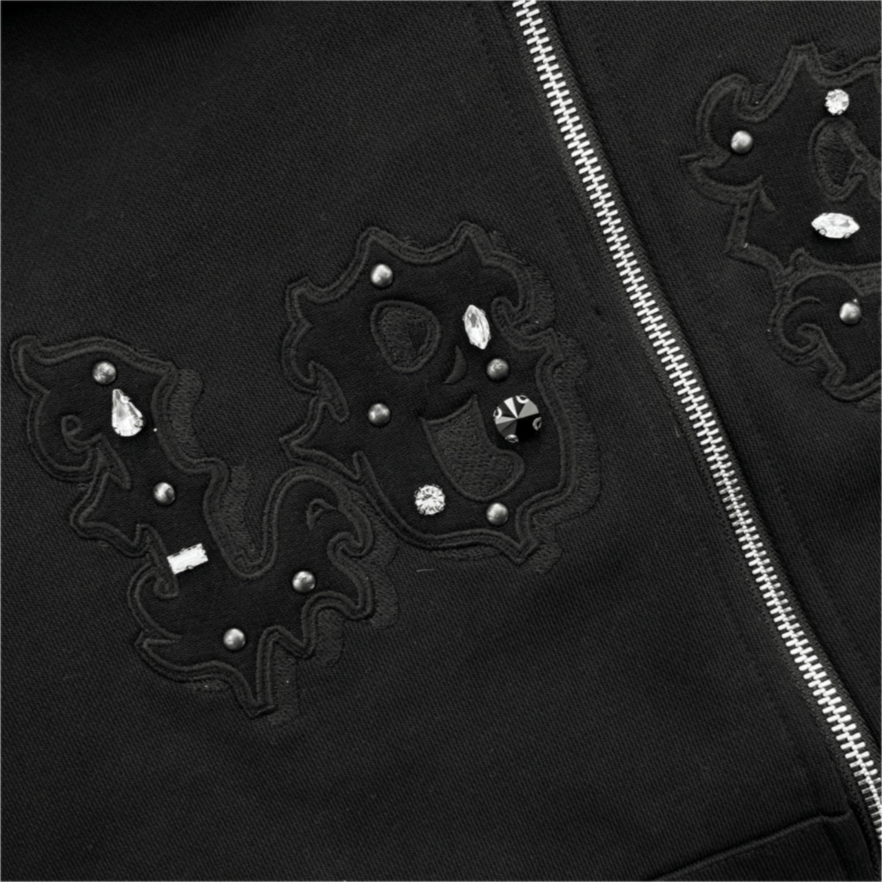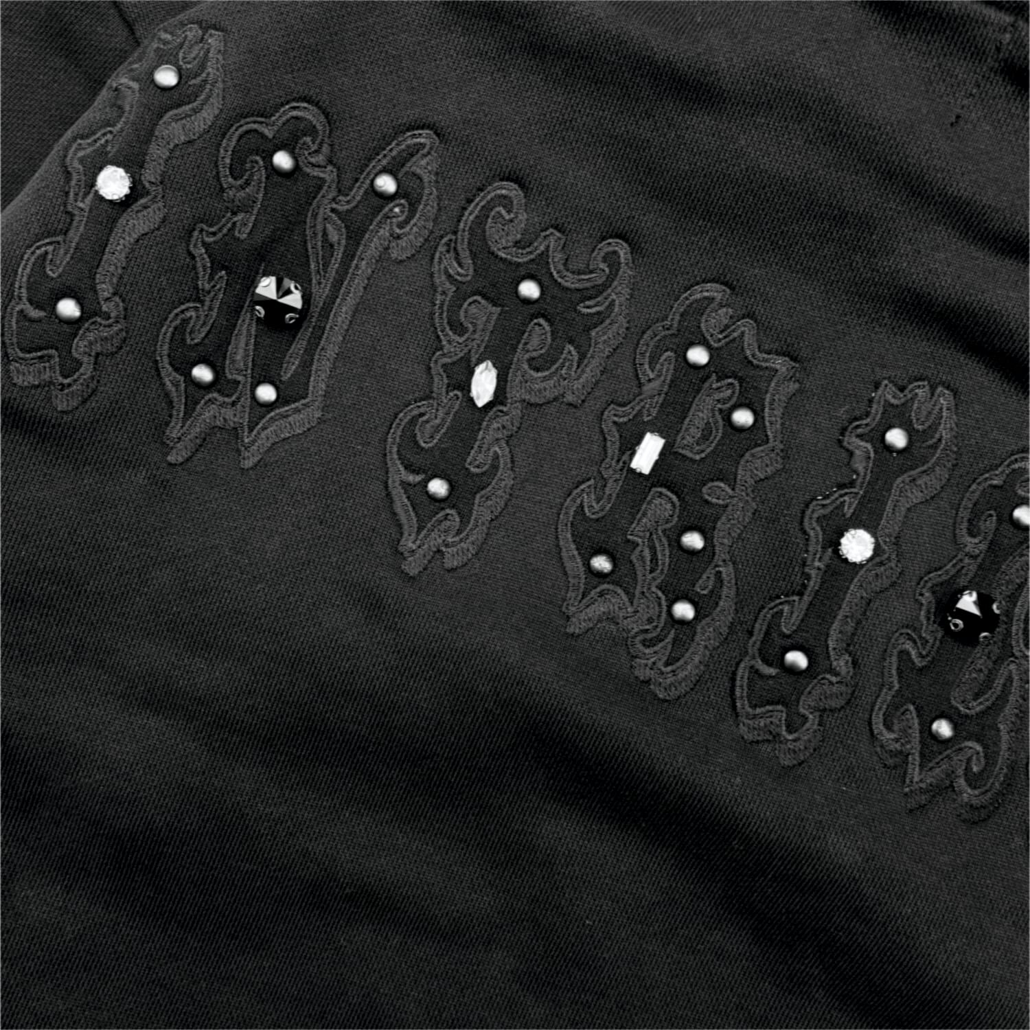 また、ロゴデザインの上と両袖部分には様々なデザインのスタッズやラインストーンが散りばめられております。