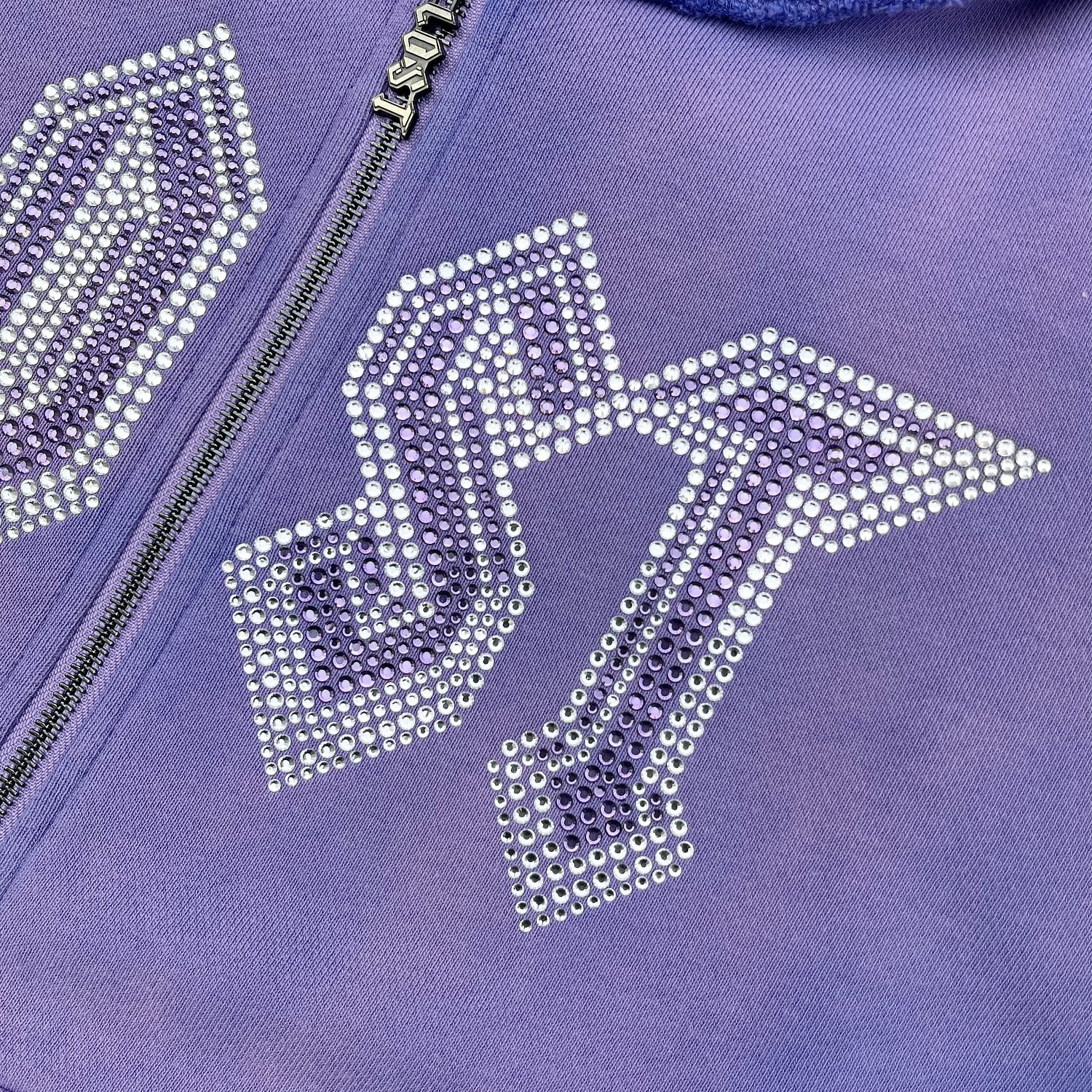 フロントにはラインストーンでブランドロゴデザイン、バックにはスプレー調でグラフィックデザインが落とし込まれております。