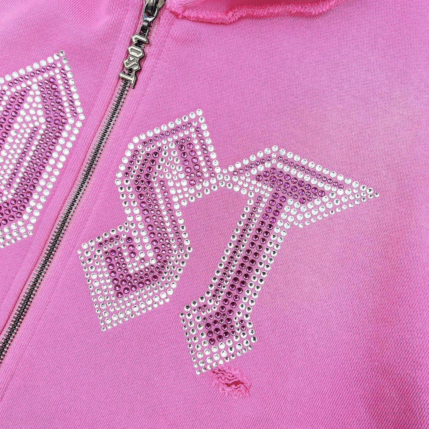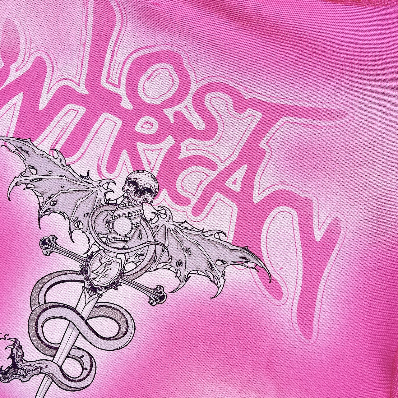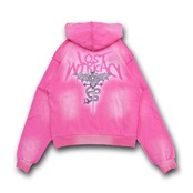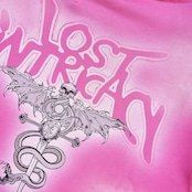 フロントにはラインストーンでブランドロゴデザイン、バックにはスプレー調でグラフィックデザインが落とし込まれております。