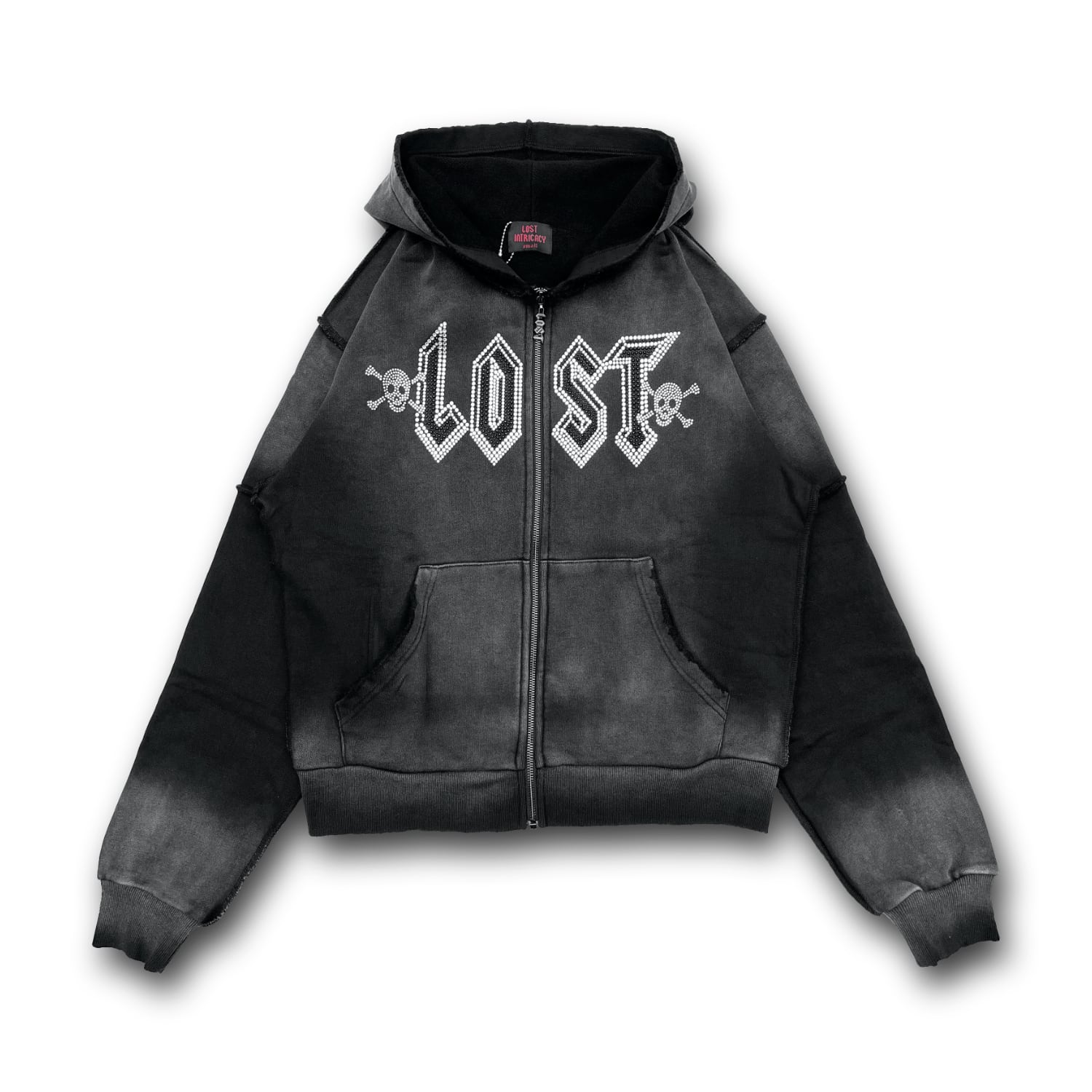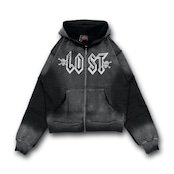 ヴィンテージのフェード加工が施されたジップフーディー。