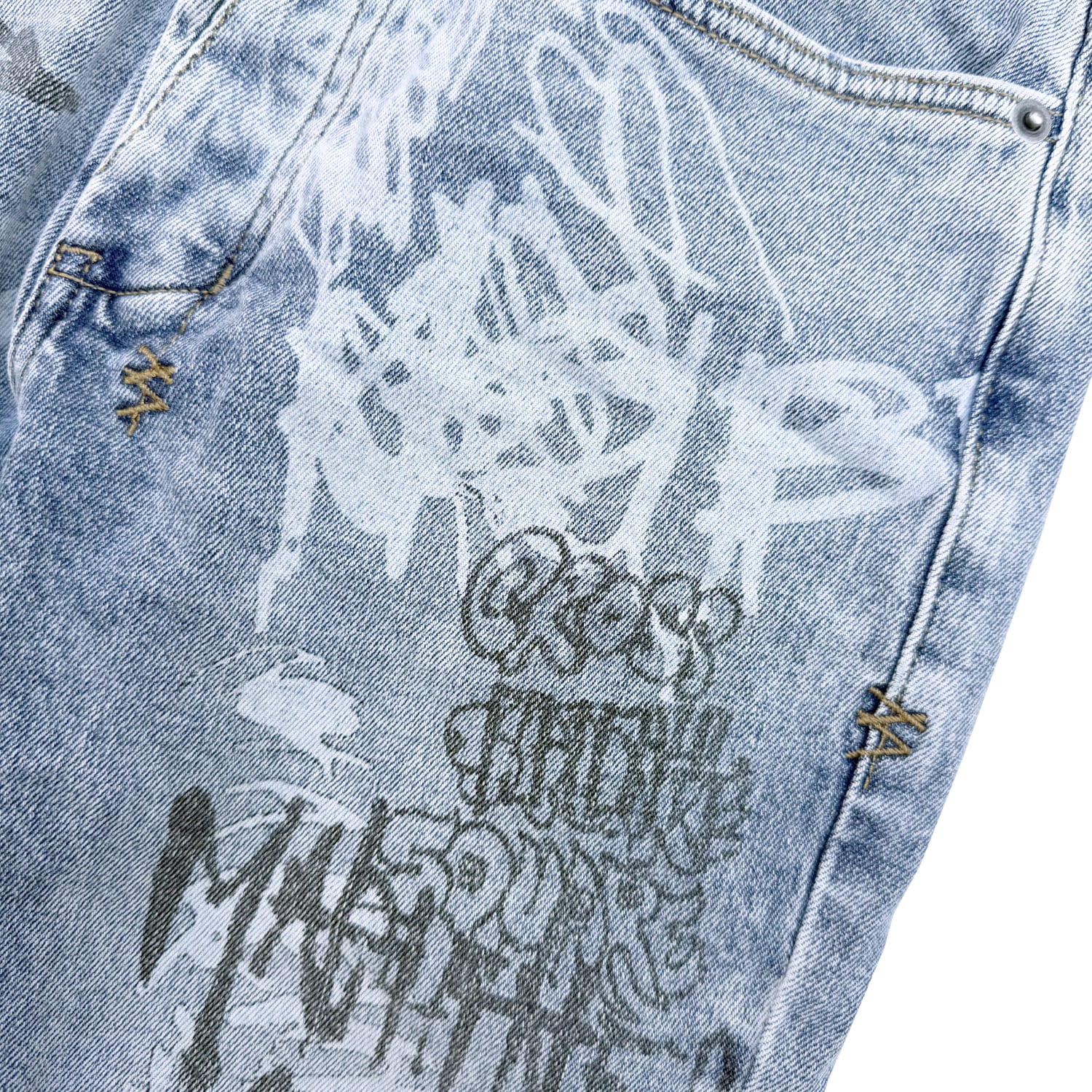 全面にグラフィティーアートがプリントされており、ウエスト内側にはデザインが刺繍で施されております。