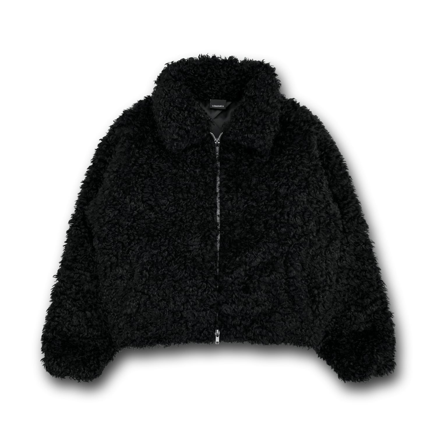 毛足が長くカールした毛並みが使用されたファージャケット。