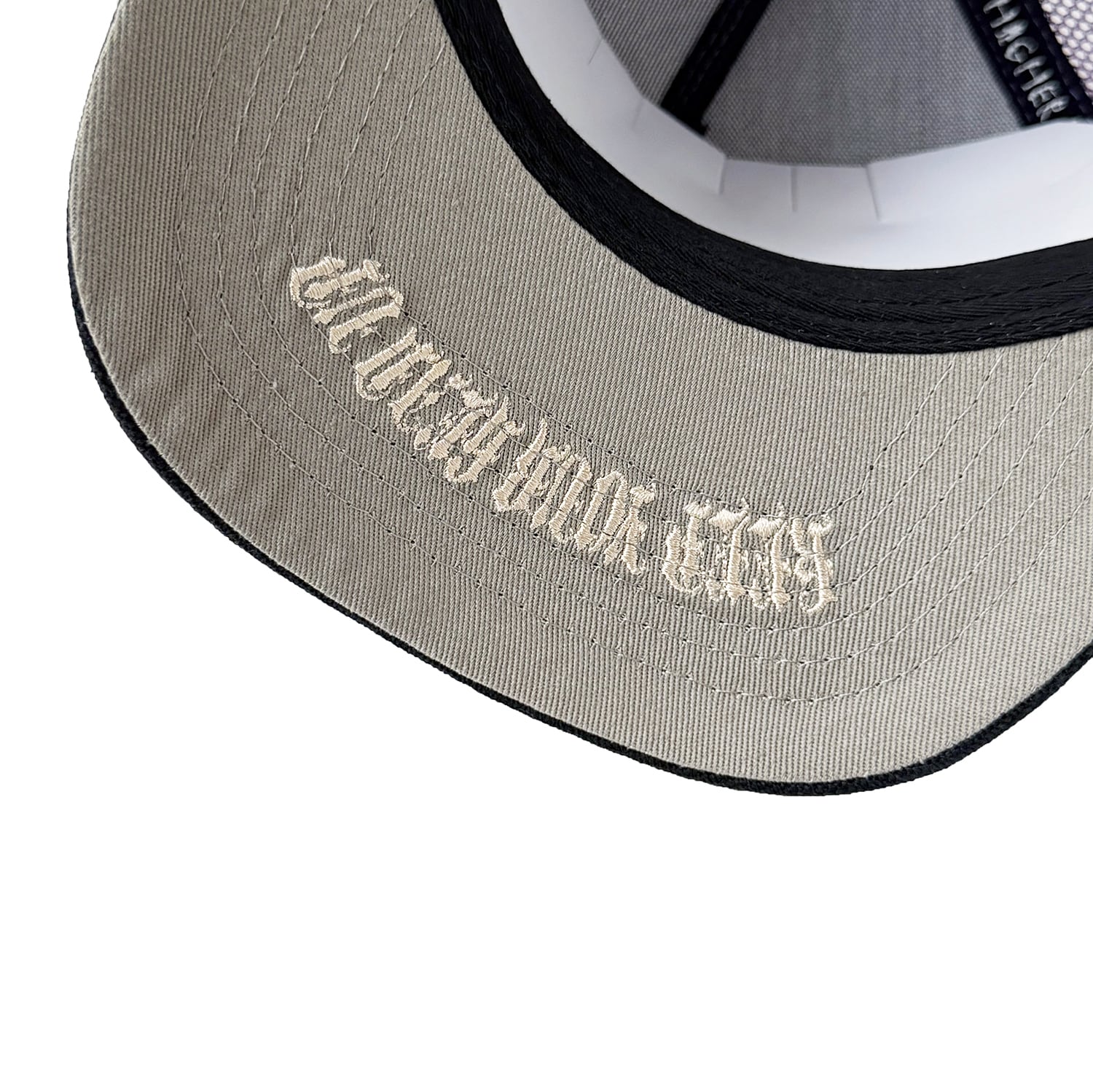 フロントのブランドロゴは立体感のある3D刺繍、つば部分やサイドとバックのメッシュ部分にも刺繍でグラフィックデザインが落とし込まれております。