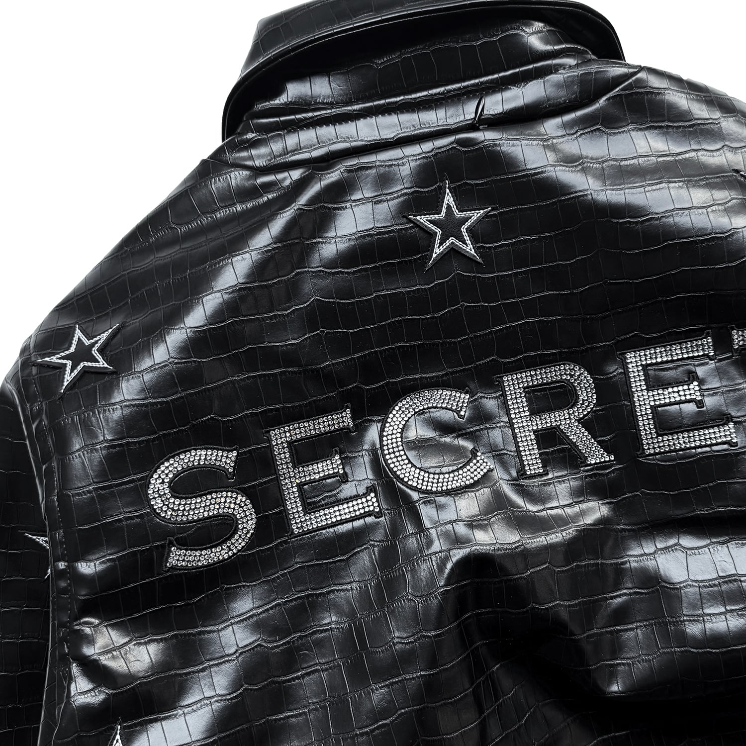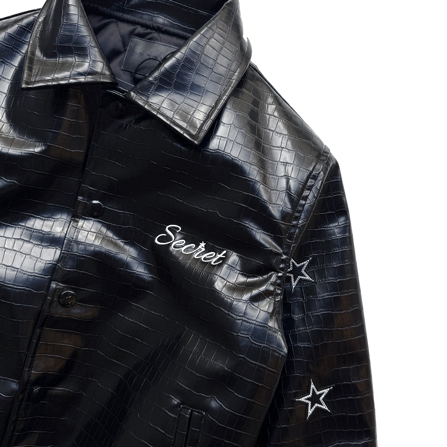 星のデザイン刺繍が散りばめられたレザージャケット。