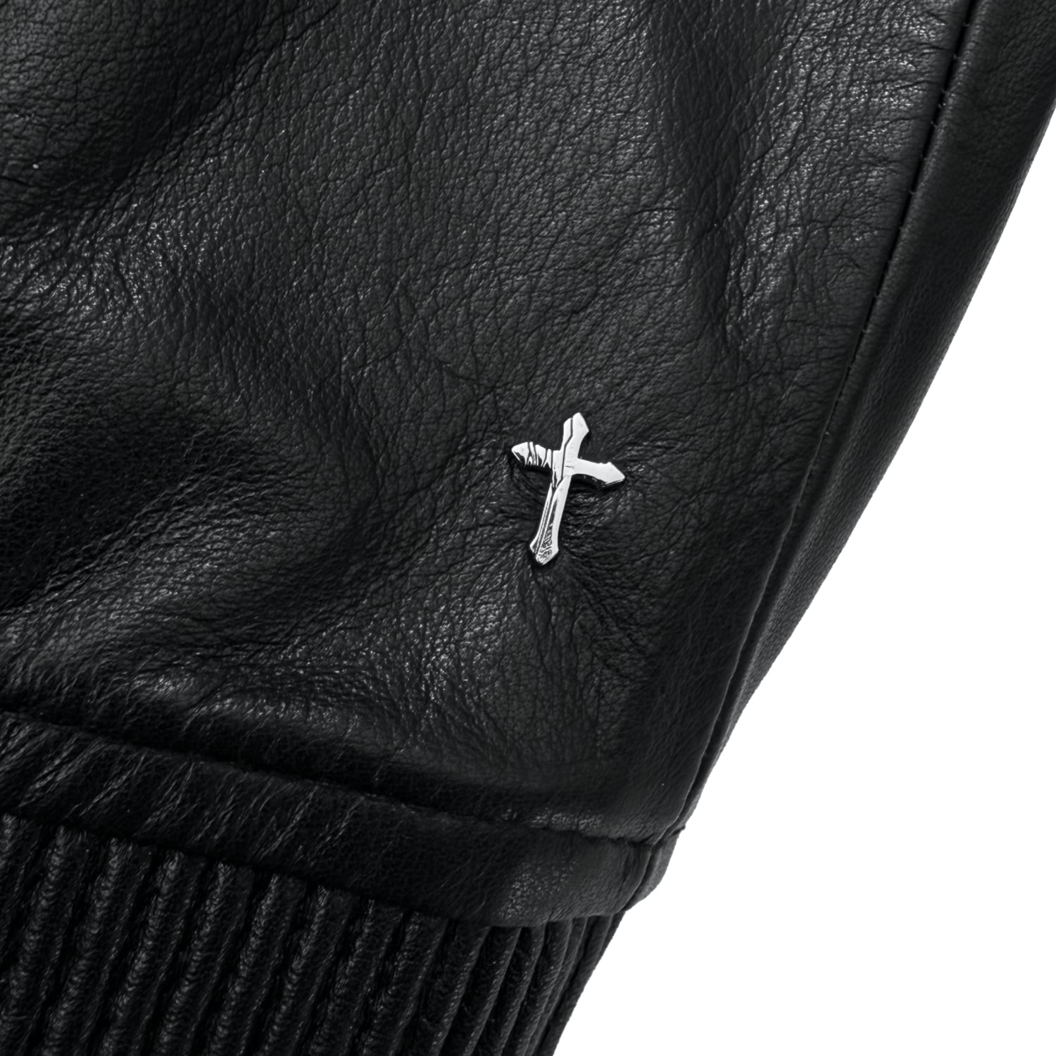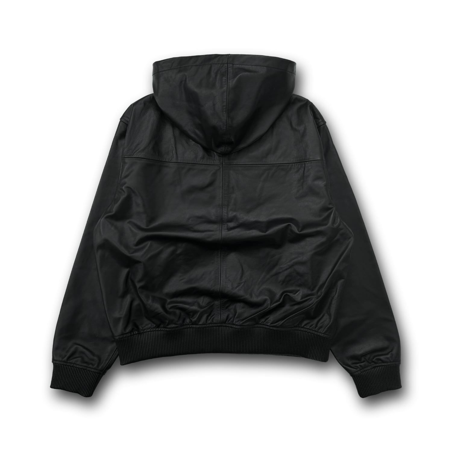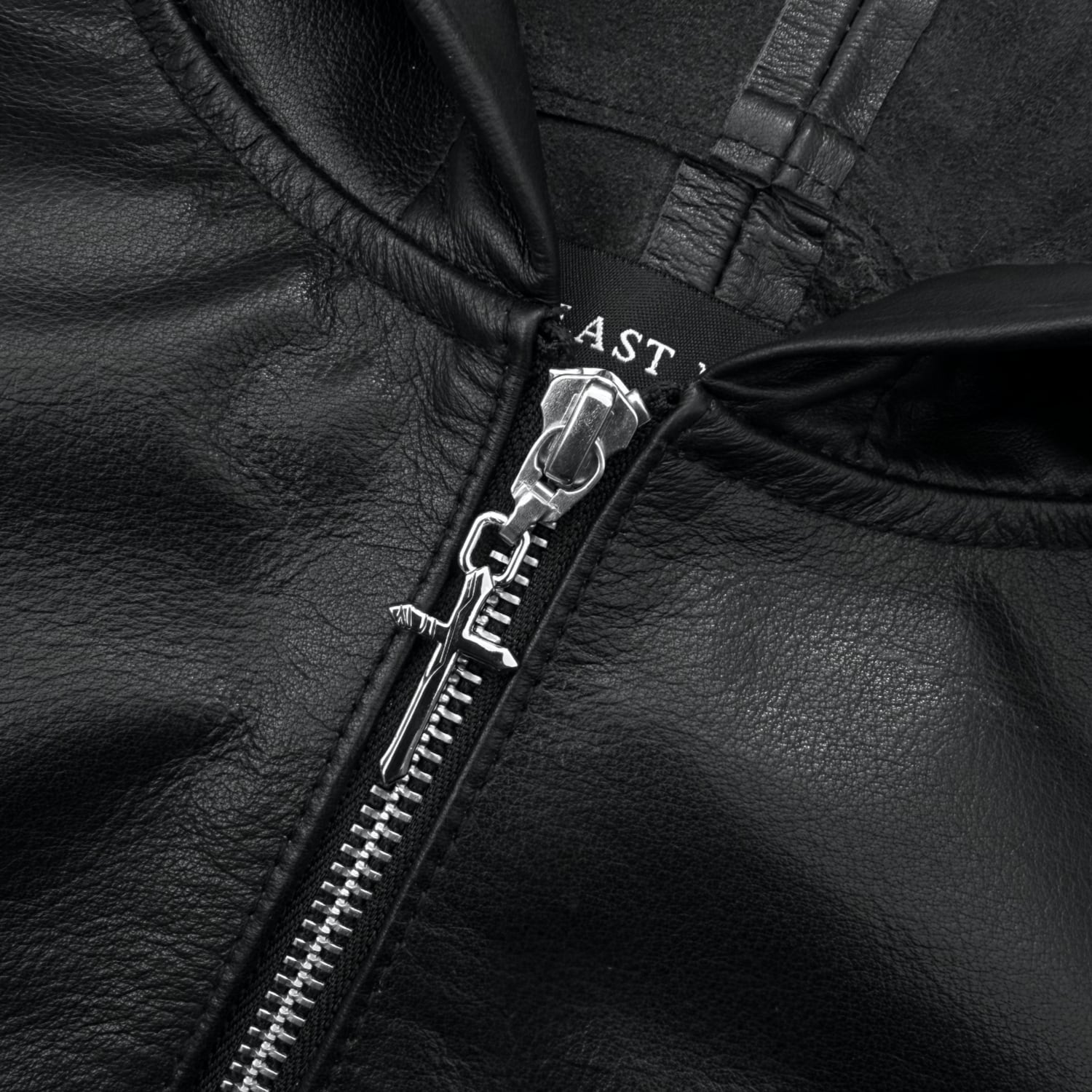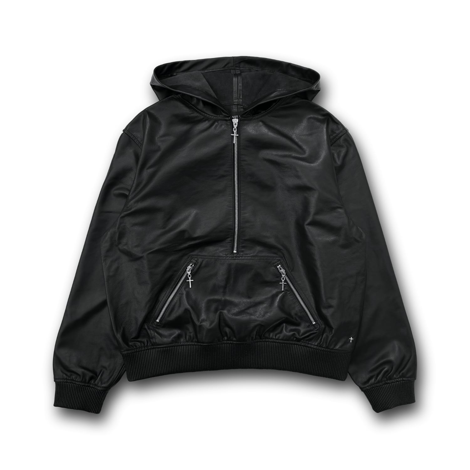 上質な牛革レザー生地が使用されたハーフジップフーディー。