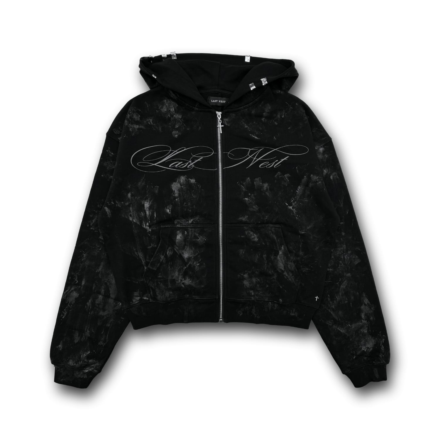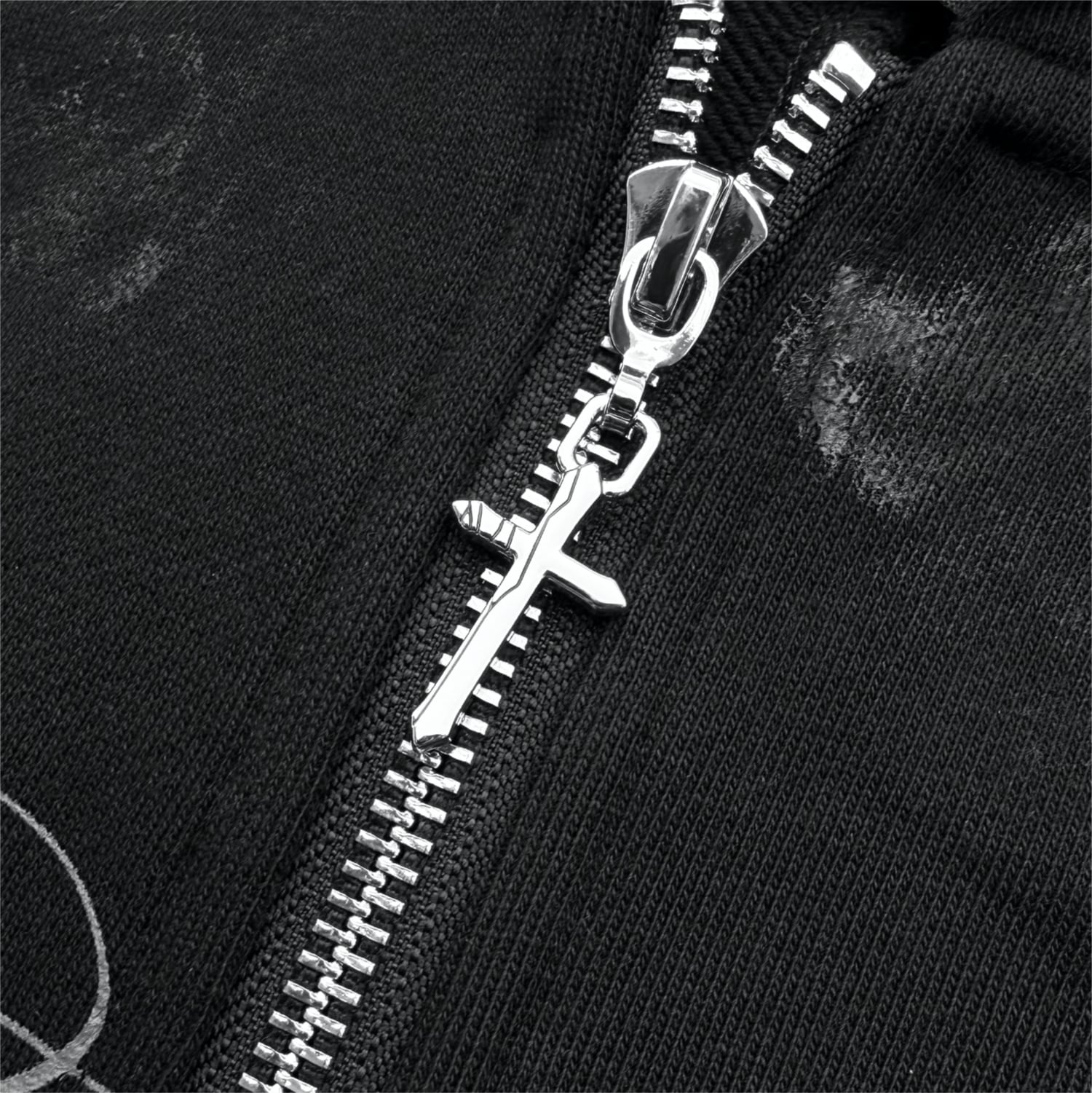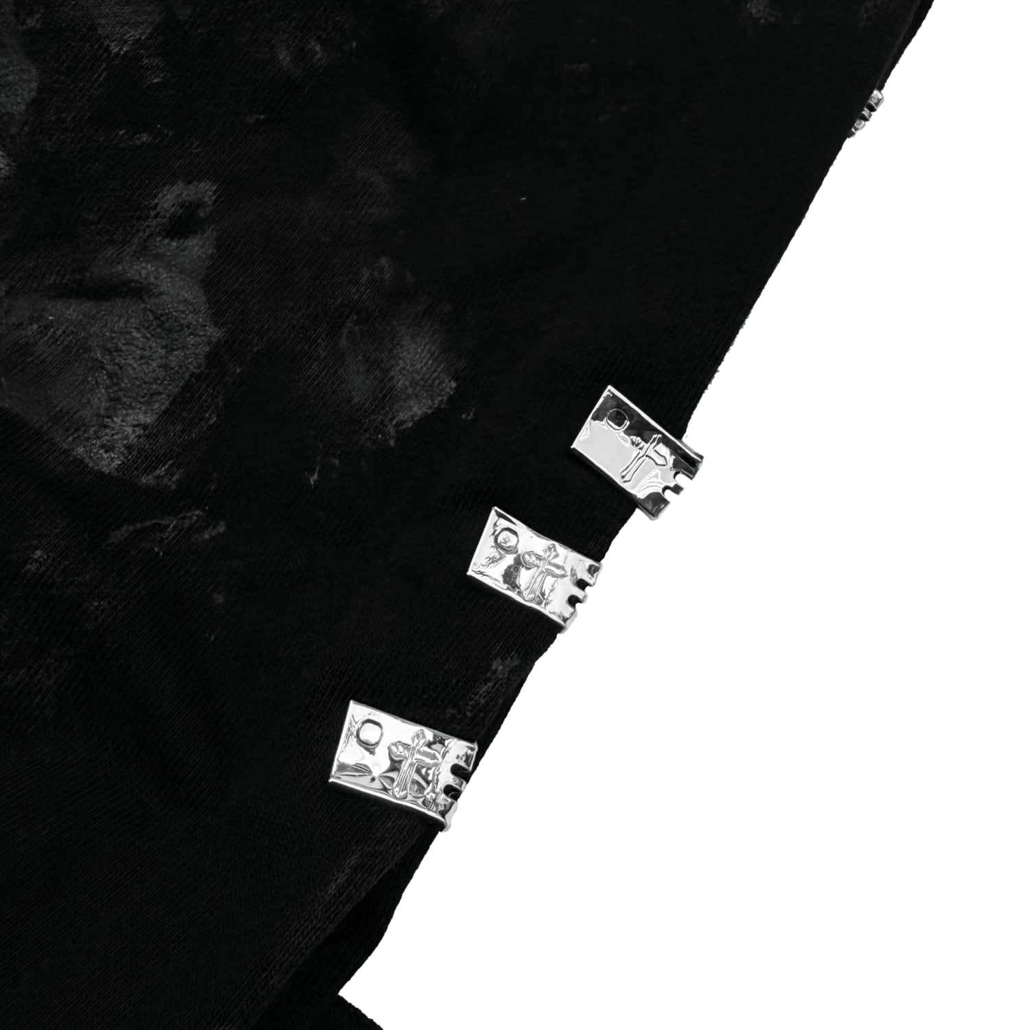 裾部分にはブランドオリジナルのクロスデザインのリベット、フード部分にはメタルチップが付いております。