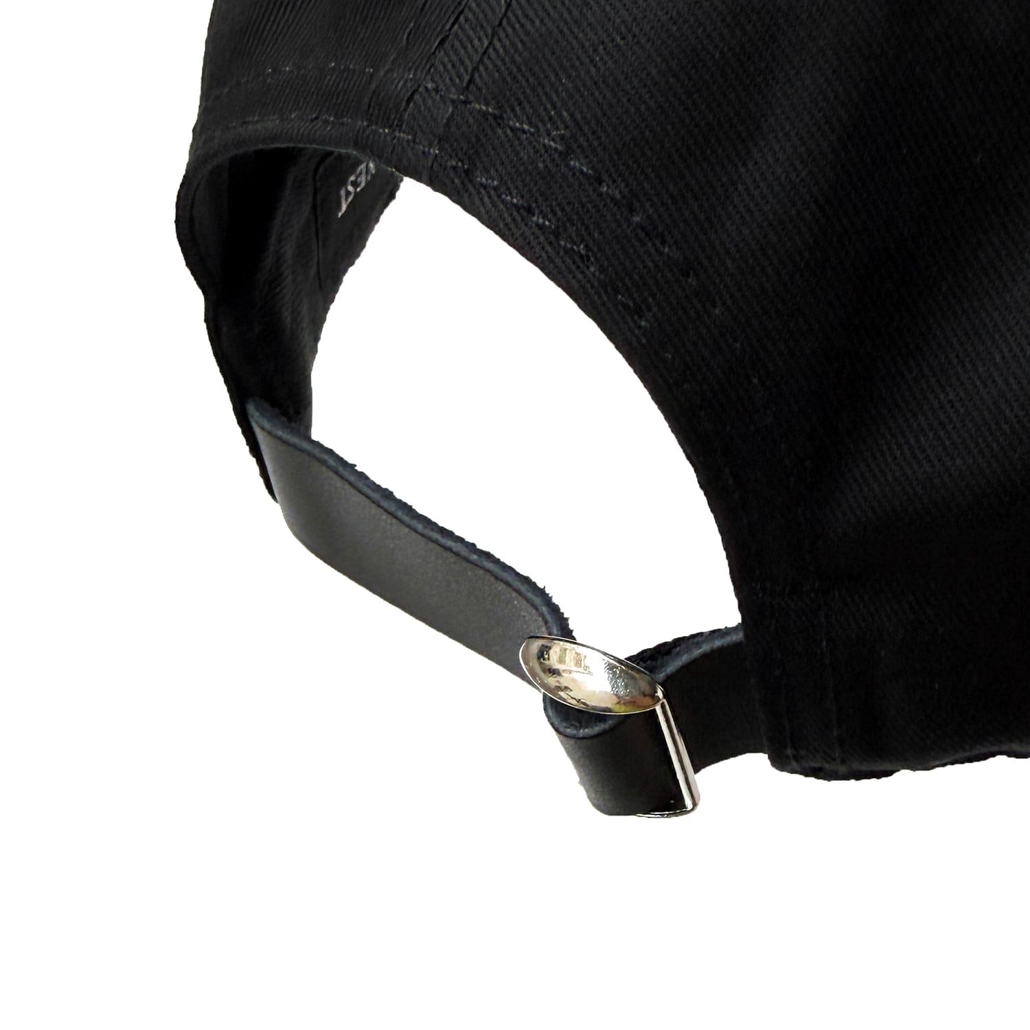 バックのレザーストラップでサイズ調節可能なフリーサイズ。